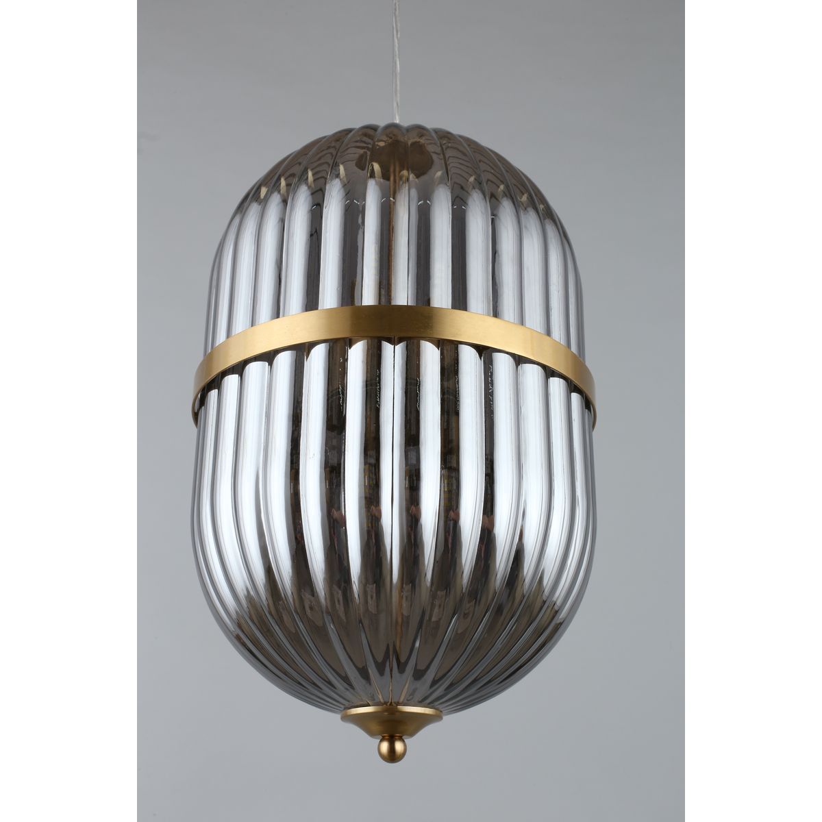 Подвесной светильник Aployt Ludovica APL.860.06.06 от Китайского бренда из коллекции Ludovica предназначен для установки на потолок в прихожей в стиле модерн. Cветильник в форме с металлической арматурой цвета латуни и дымчатого цвета плафонами из стекла предназначен для освещения 6 м2.
