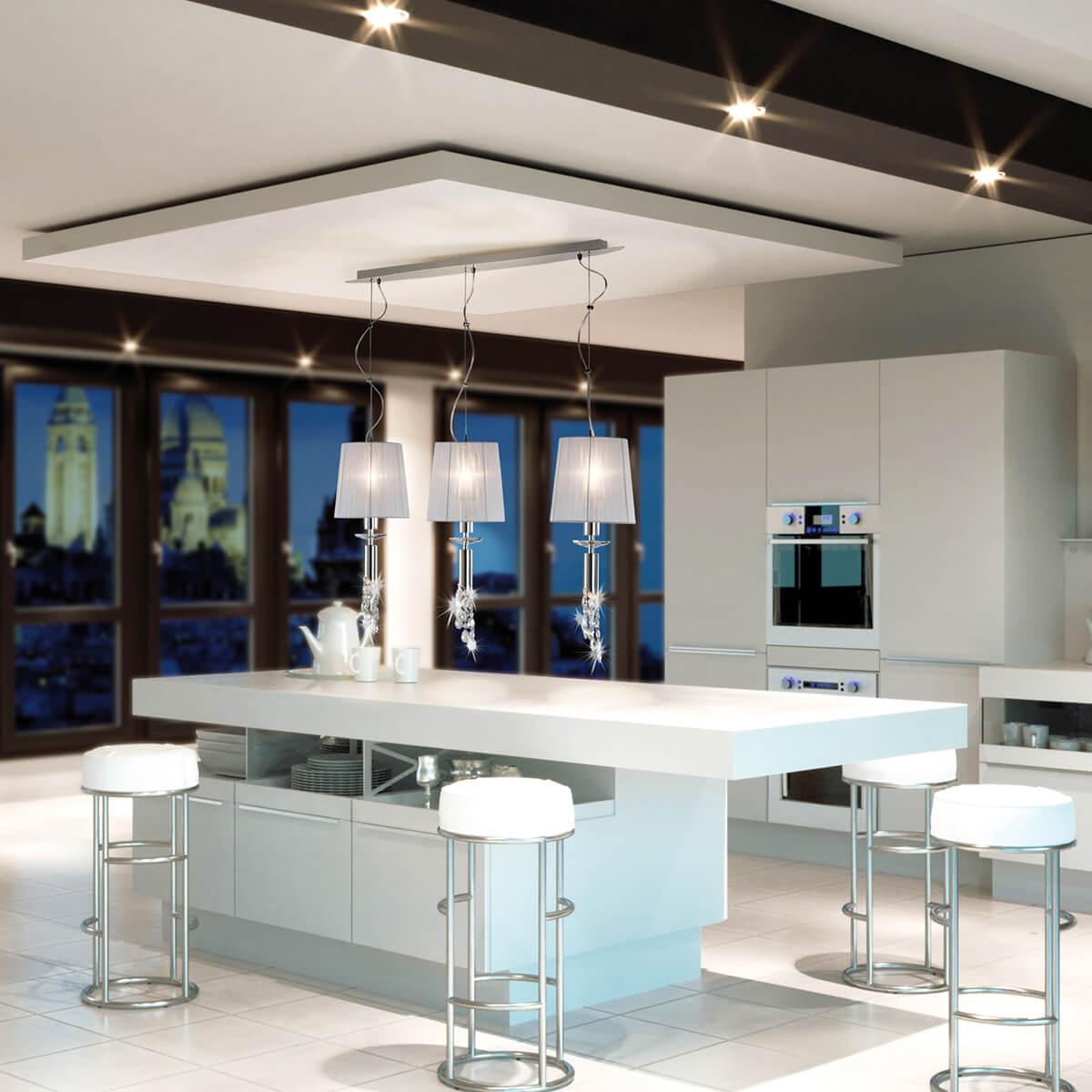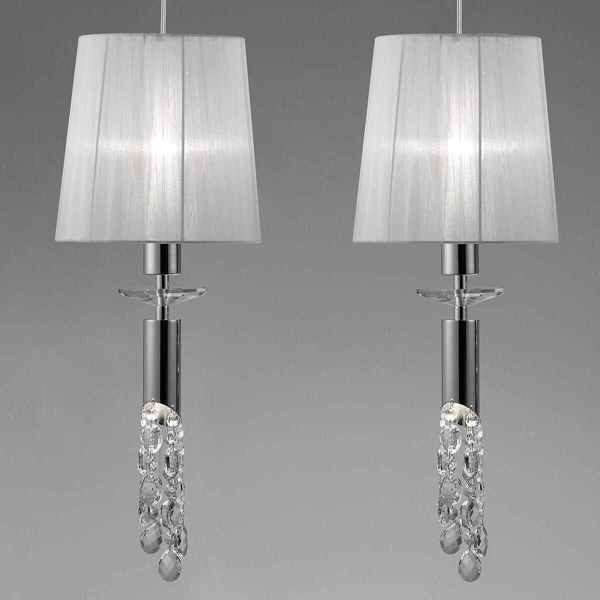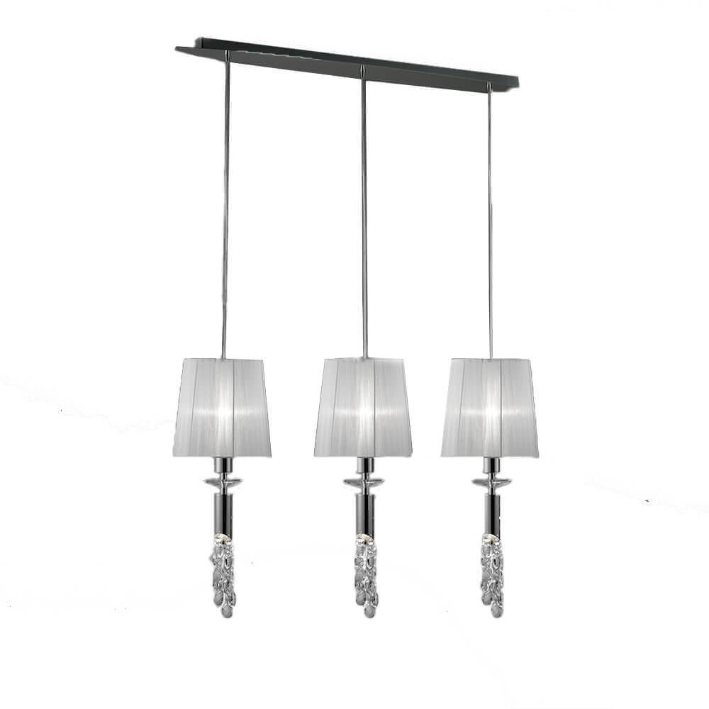 Подвесной светильник Mantra Tiffany 3855 от Китайского бренда Mantra из коллекции Tiffany предназначен для установки на потолок в гостиной в дизайнерском стиле. Cветильник в форме конуса с металлической арматурой цвет хрома и белого цвета плафонами из органзы предназначен для освещения м2.