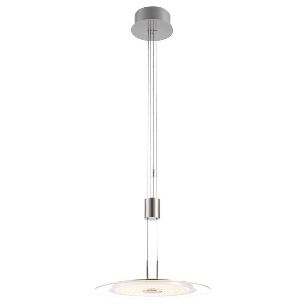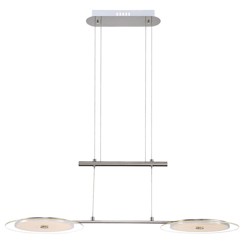 Подвесной светодиодный светильник Globo Dario 15818 от Китайского бренда Globo из коллекции Dario предназначен для установки на потолок в кухне в хай-тек стиле. Cветильник в форме круга с металлической арматурой цвета никель и белого цвета плафонами из стекла предназначен для освещения м2.