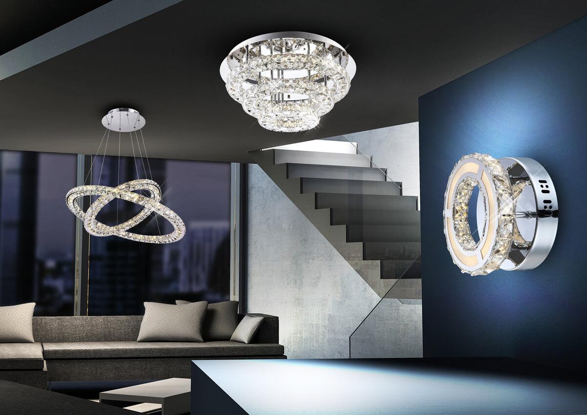 Подвесной светодиодный светильник Globo Marilyn I 67037-60 от Китайского бренда Globo из коллекции Marilyn I предназначен для установки на потолок в гостиной в дизайнерском стиле. Cветильник в форме с металлической арматурой цвет хрома и прозрачного цвета плафонами из хрусталя предназначен для освещения м2.