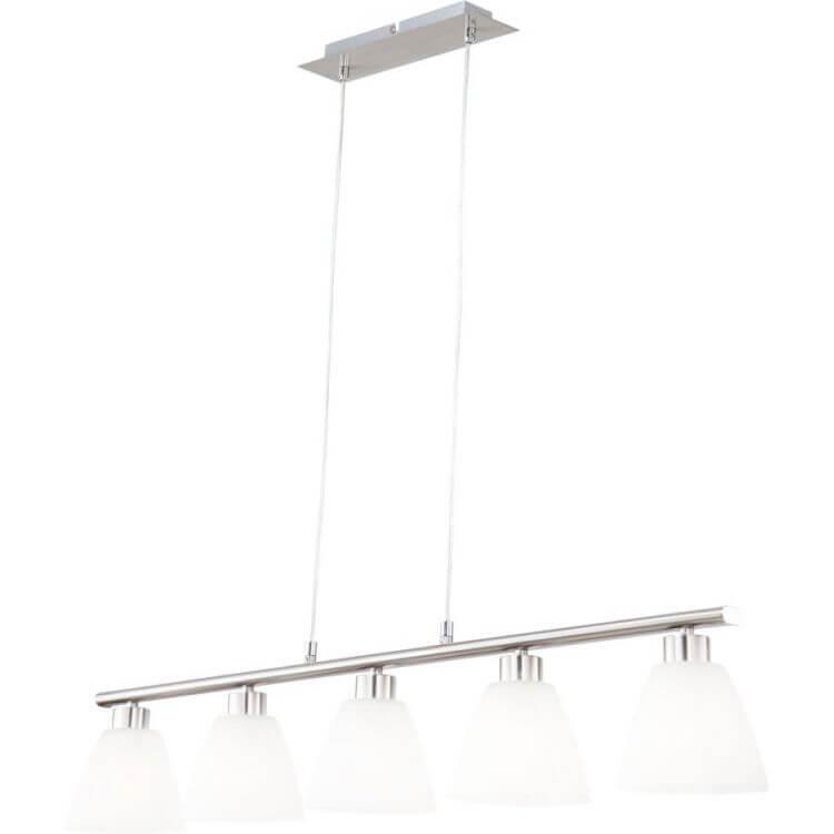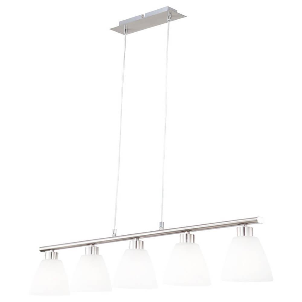 Подвесной светильник Globo Illimani 68615-5 от Китайского бренда Globo из коллекции Illimani предназначен для установки на потолок в гостиной в современном стиле. Cветильник в форме овала с металлической арматурой цвета никель и белого цвета плафонами из стекла предназначен для освещения 11,1 м2.