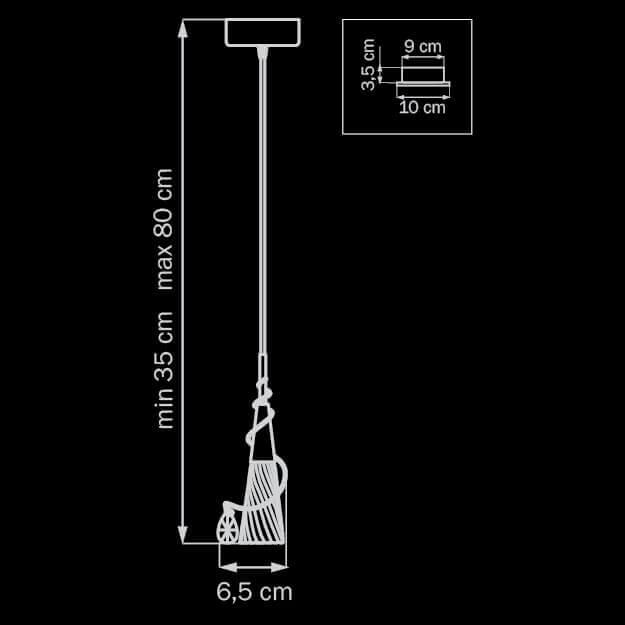 Для светильника необходима 1 галогеновая лампа 25 W. Габариты изделия: высота – 350 мм, диаметр – 65 мм.