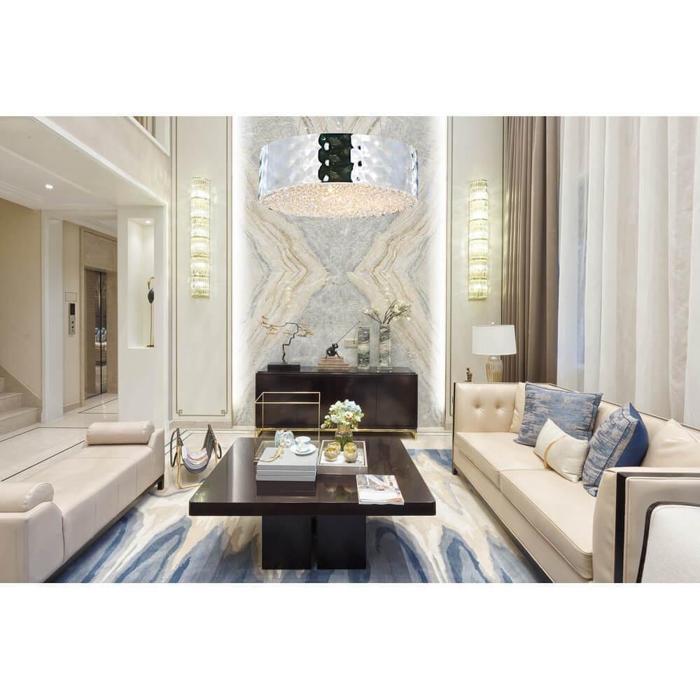 Для светильника необходима 6 галогеновых ламп 25 W. Габариты изделия: высота – 120 мм, диаметр – 400 мм.