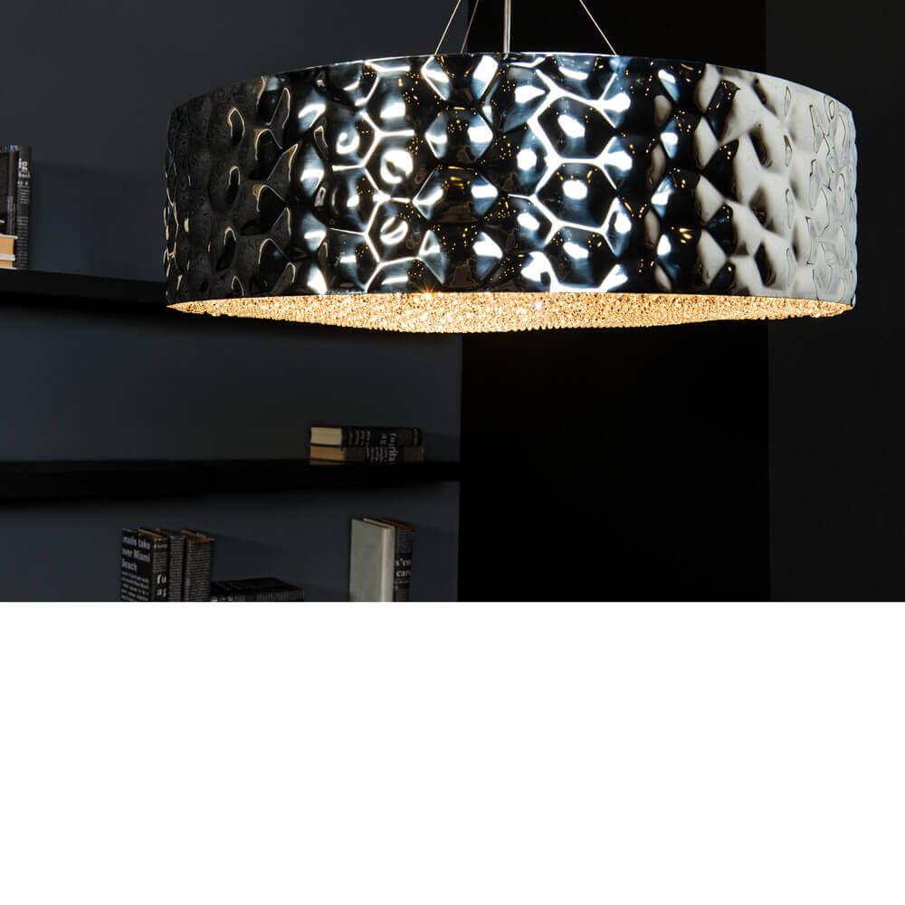 Подвесной светильник Divinare Paola 2002/01 SP-9 от Китайского бренда Divinare из коллекции Paola предназначен для установки на потолок в кафе и ресторанах в хай-тек стиле. Cветильник в форме цилиндра с металлической арматурой цвет хрома и прозрачного цвета плафонами из хрусталя предназначен для освещения 13 м2.