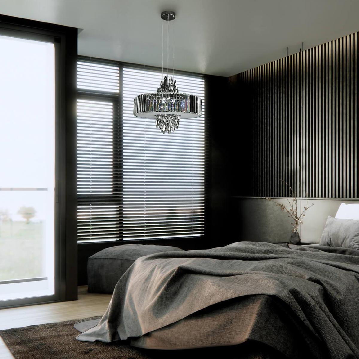 Подвесной светильник Divinare Tiziana 1285/02 SP-6 от Китайского бренда Divinare из коллекции Tiziana предназначен для установки на потолок в спальни в дизайнерском стиле. Cветильник в форме круга с металлической арматурой цвет хрома и прозрачного цвета плафонами из хрусталя предназначен для освещения 14 м2.