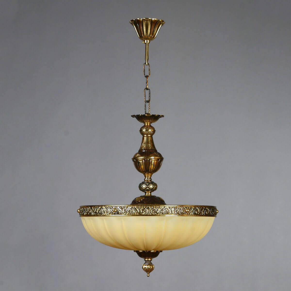 Подвесной светильник Ambiente Lugo 8539 PB от Китайского бренда Ambiente из коллекции Lugo предназначен для установки на потолок в спальни в классиком стиле. Cветильник в форме полукруга с латунной арматурой бронзового цвета и желтого цвета плафонами из стекла предназначен для освещения м2.