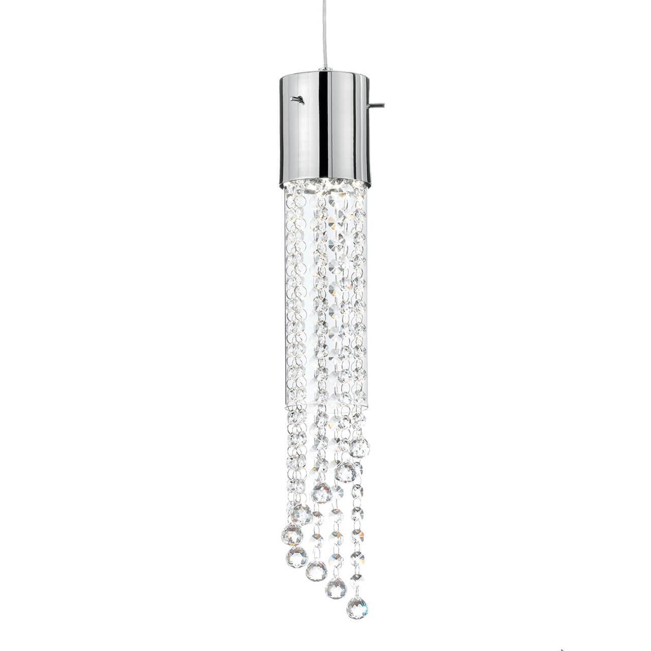 Подвесной светильник Ideal Lux Gocce SP1 089669 от Китайского бренда Ideal Lux из коллекции Gocce предназначен для установки на потолок в кафе и ресторанах в стиле модерн. Cветильник в форме цилиндра с металлической арматурой цвет хрома и прозрачного цвета плафонами из стекла предназначен для освещения 2 м2.