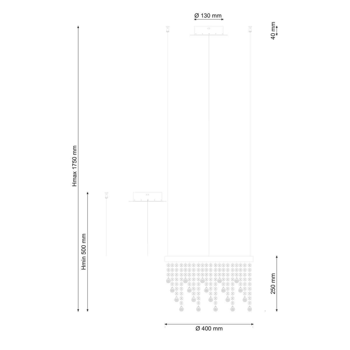 Для светильника необходима светодиодных ламп 24 W. Габариты изделия: высота – 1290 мм, диаметр – 400 мм.
