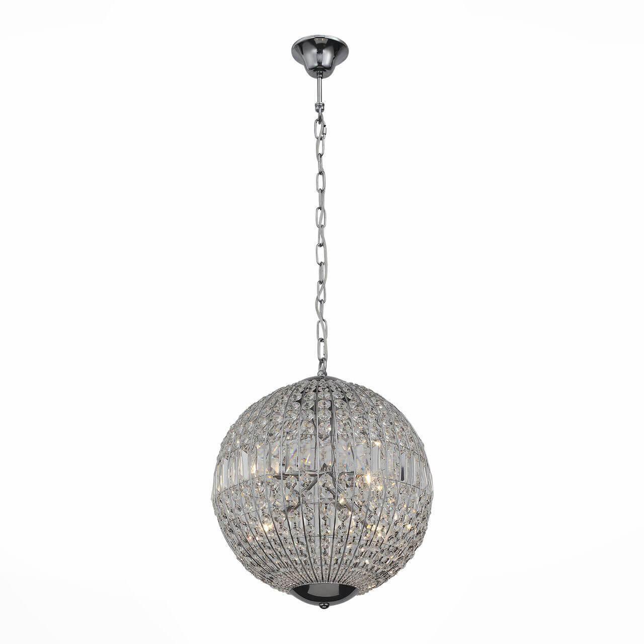 Подвесной светильник ST Luce Mondo SL226.103.05 от Китайского бренда ST Luce из коллекции Mondo предназначен для установки на потолок в спальни в современном стиле. Cветильник в форме круга с металлической арматурой цвет хрома и прозрачного цвета плафонами из хрусталя предназначен для освещения м2.