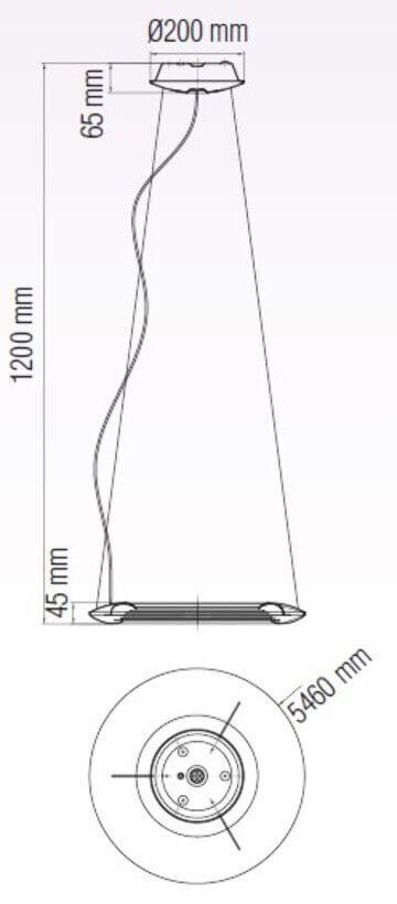 Для светильника необходима светодиодных ламп 35 W. Габариты изделия: высота – 1200 мм, диаметр – 546 мм.