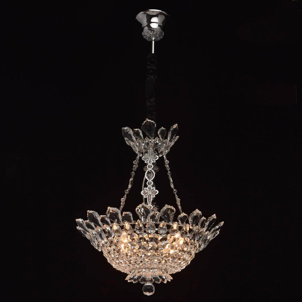 Подвесной светильник MW-Light Патриция 1 447010306 от Немецкого бренда MW-Light из коллекции Патриция предназначен для установки на потолок в спальни в классиком стиле. Cветильник в форме Флористика с металлической арматурой цвет хрома и прозрачного цвета плафонами из хрусталя предназначен для освещения 13,3 м2.