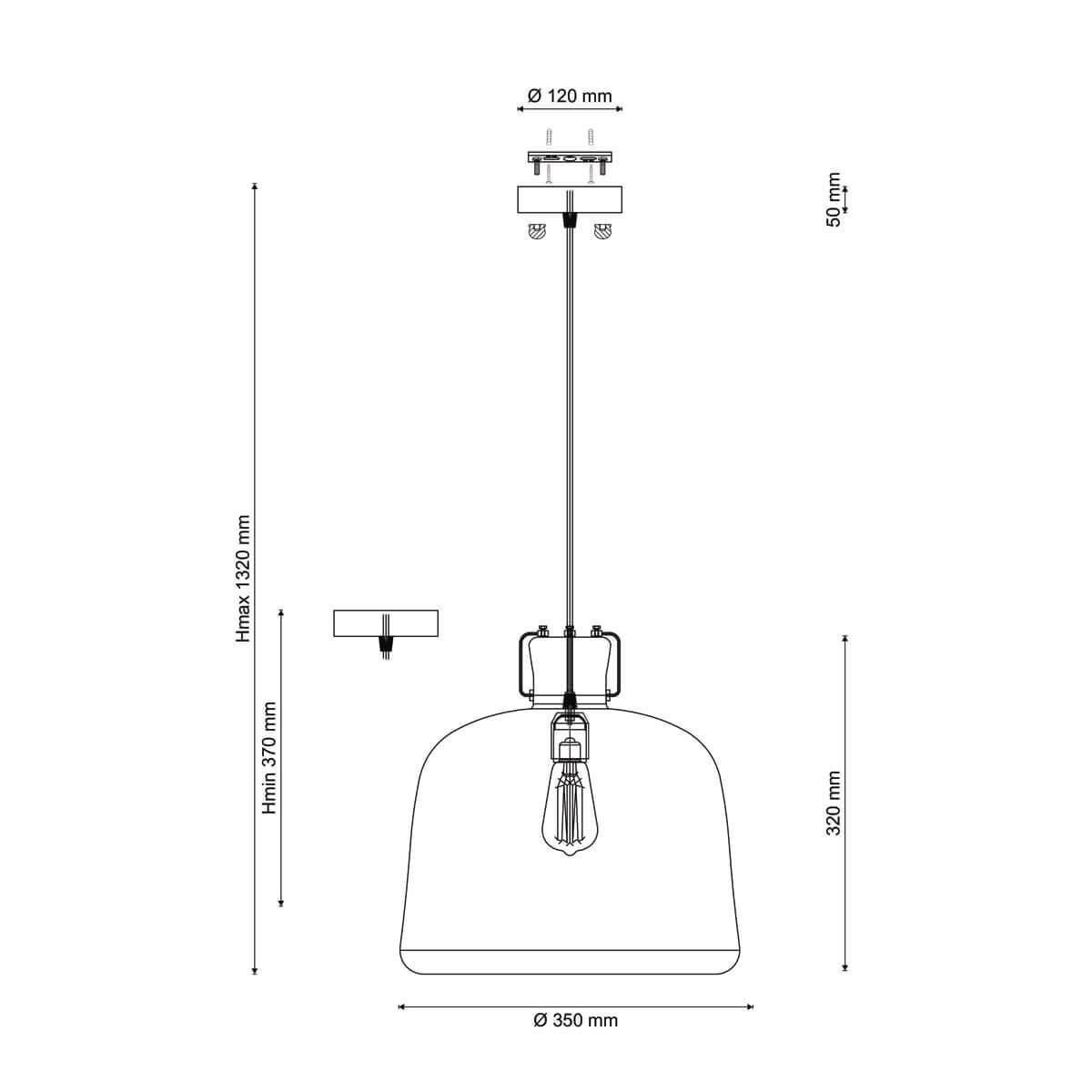 Для светильника необходима 1 лампа накаливания 60 W. Габариты изделия: высота – 370 мм, диаметр – 350 мм.