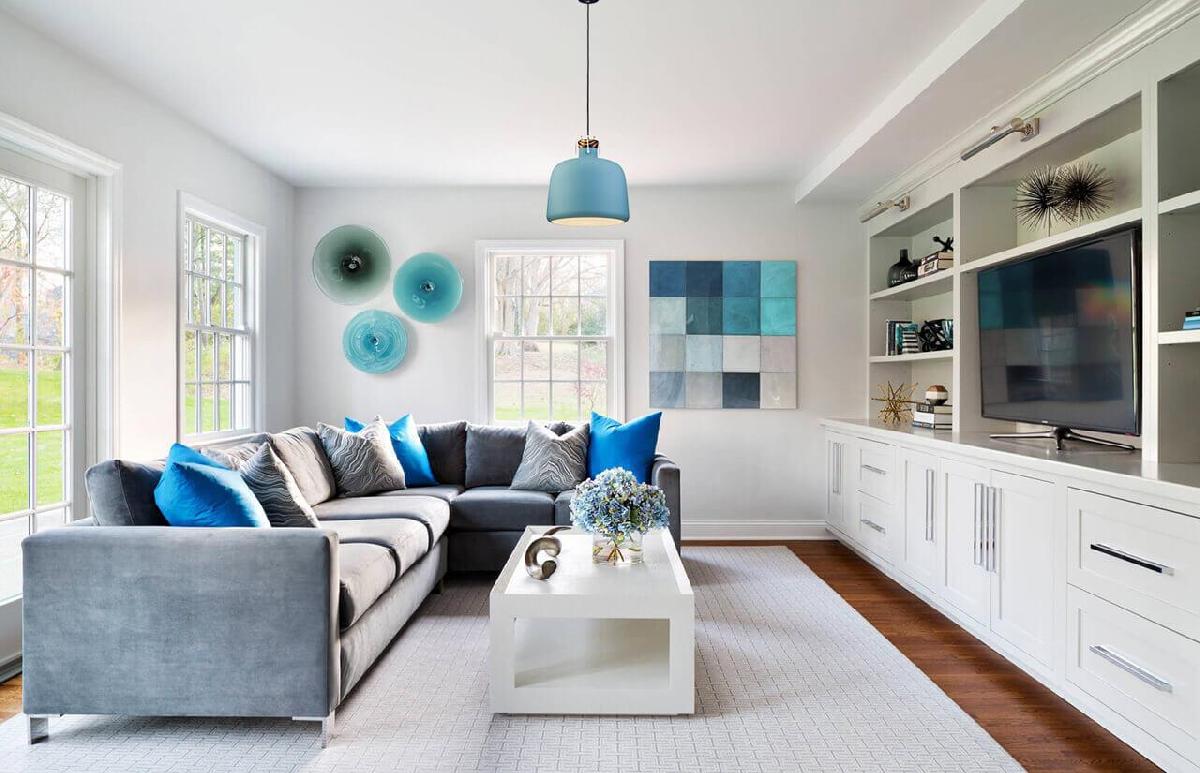 Подвесной светильник Lucia Tucci Narni 1940.1 Gray-Green от Итальянского бренда Lucia Tucci из коллекции Narni предназначен для установки на потолок в кухне в морском стиле. Cветильник в форме овала с металлической арматурой черного цвета и синего цвета плафонами из металла предназначен для освещения 3,3 м2.