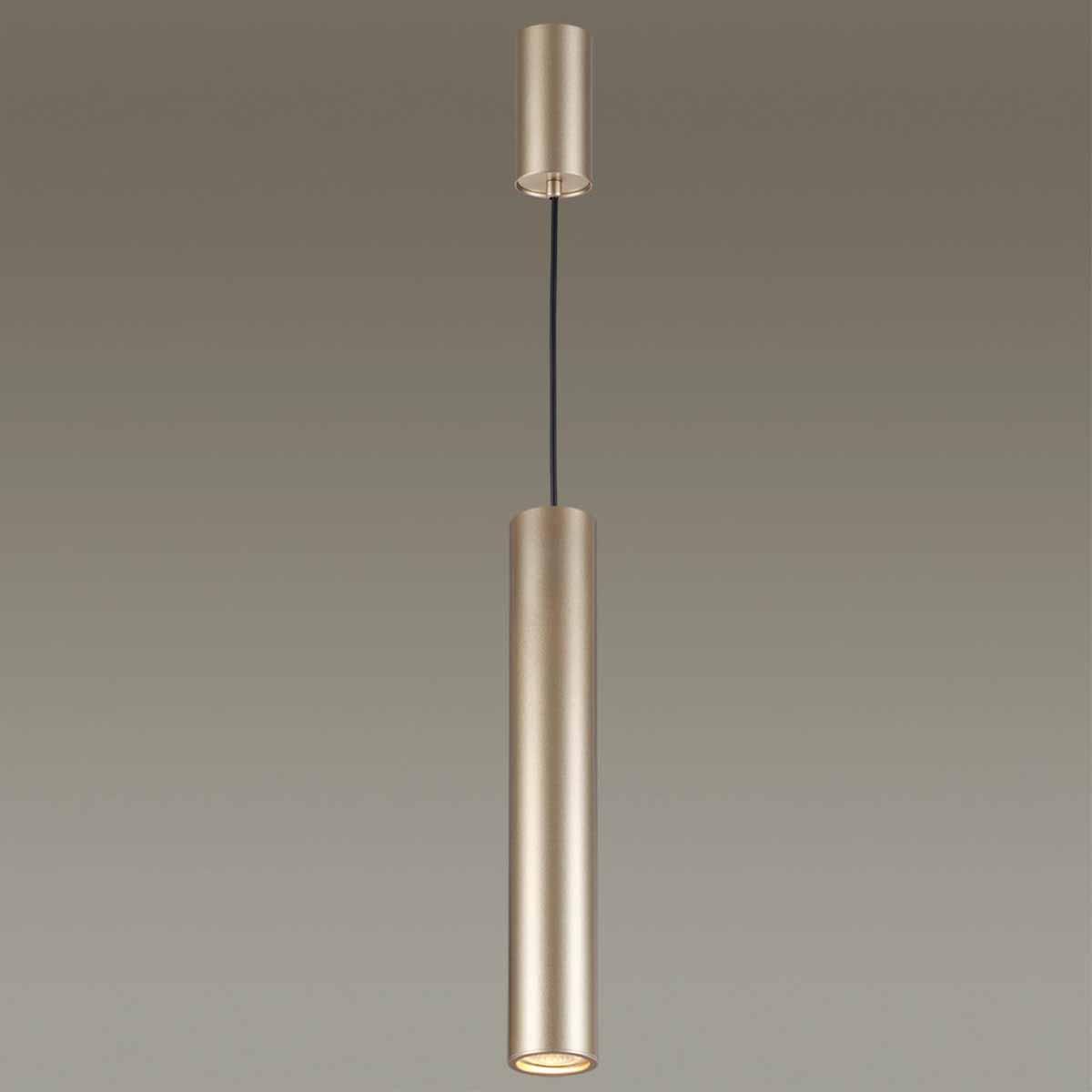 Подвесной светильник Odeon Light Vincere 3828/1CA от бренда Odeon Light из коллекции предназначен для установки на потолок в кухне в современном стиле. Cветильник в форме цилиндра с металлической арматурой залотого цвета и залотого цвета плафонами из металла предназначен для освещения м2.