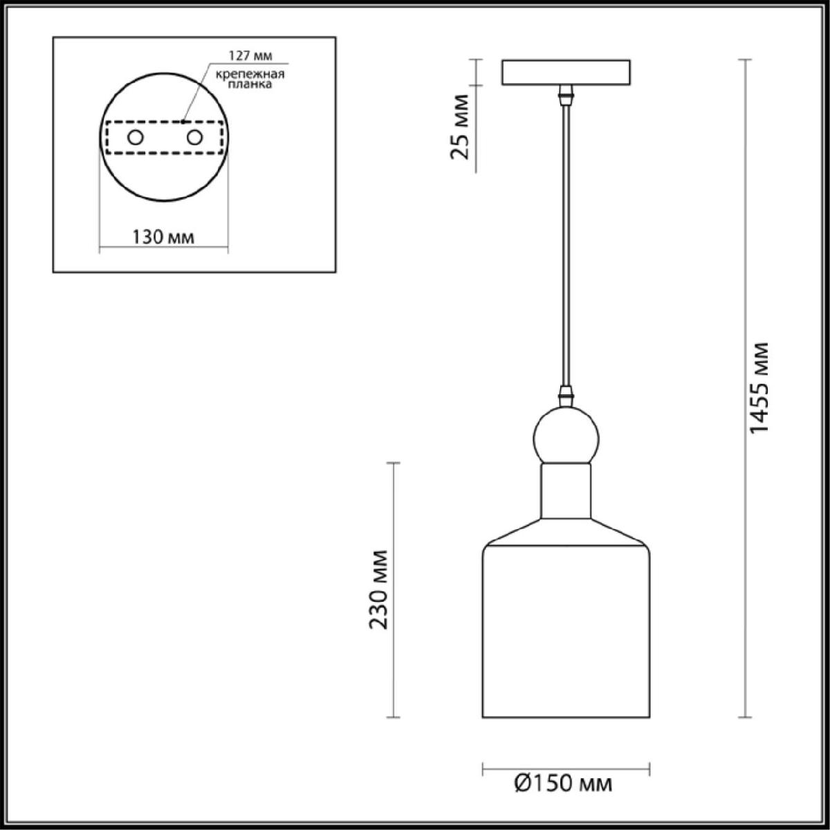 Для светильника необходима 1 лампа накаливания 40 W. Габариты изделия: высота – 230 мм, диаметр – 150 мм.
