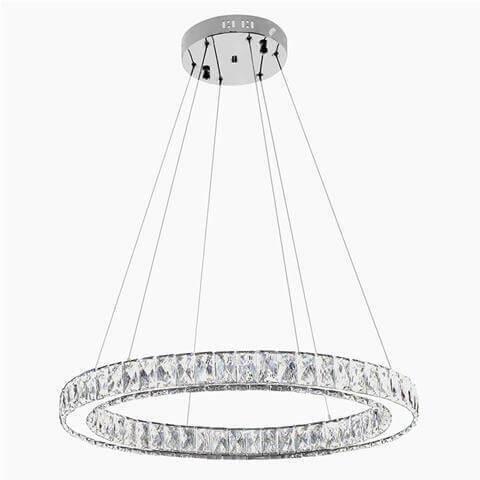Подвесной светодиодный светильник Horoz Eternity 019-022-0040 от Турецкого бренда Horoz из коллекции Eternity предназначен для установки на потолок в гостиной в современном стиле. Cветильник в форме круга с металлической арматурой цвет хрома и прозрачного цвета плафонами из хрусталя предназначен для освещения м2.