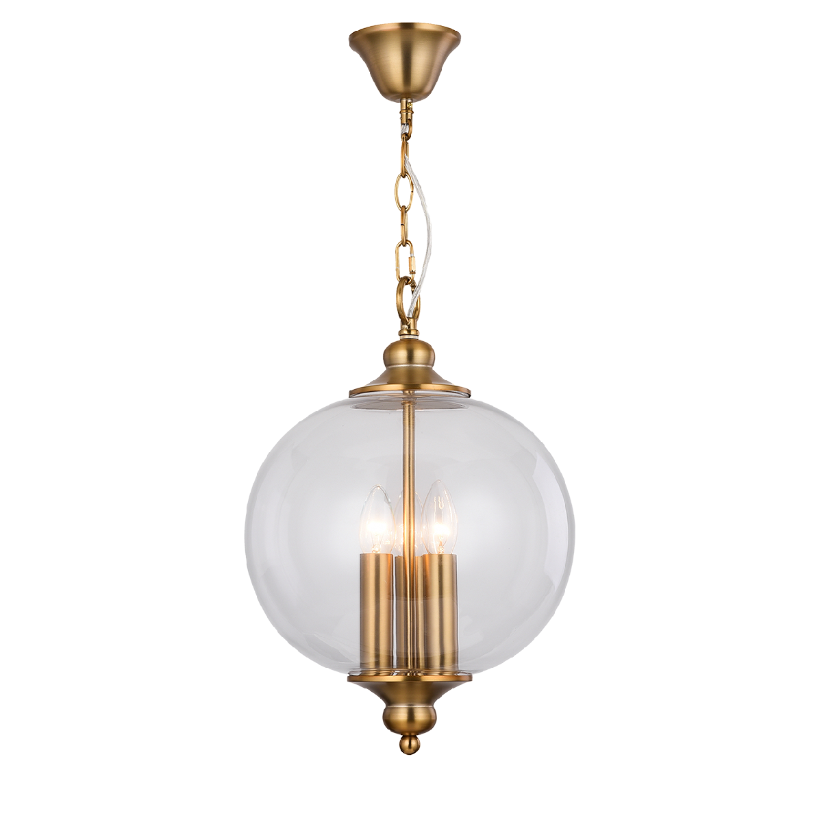 Для светильника необходима 3 лампы накаливания 60 W. Габариты изделия: высота – 430 мм, диаметр – 305 мм.