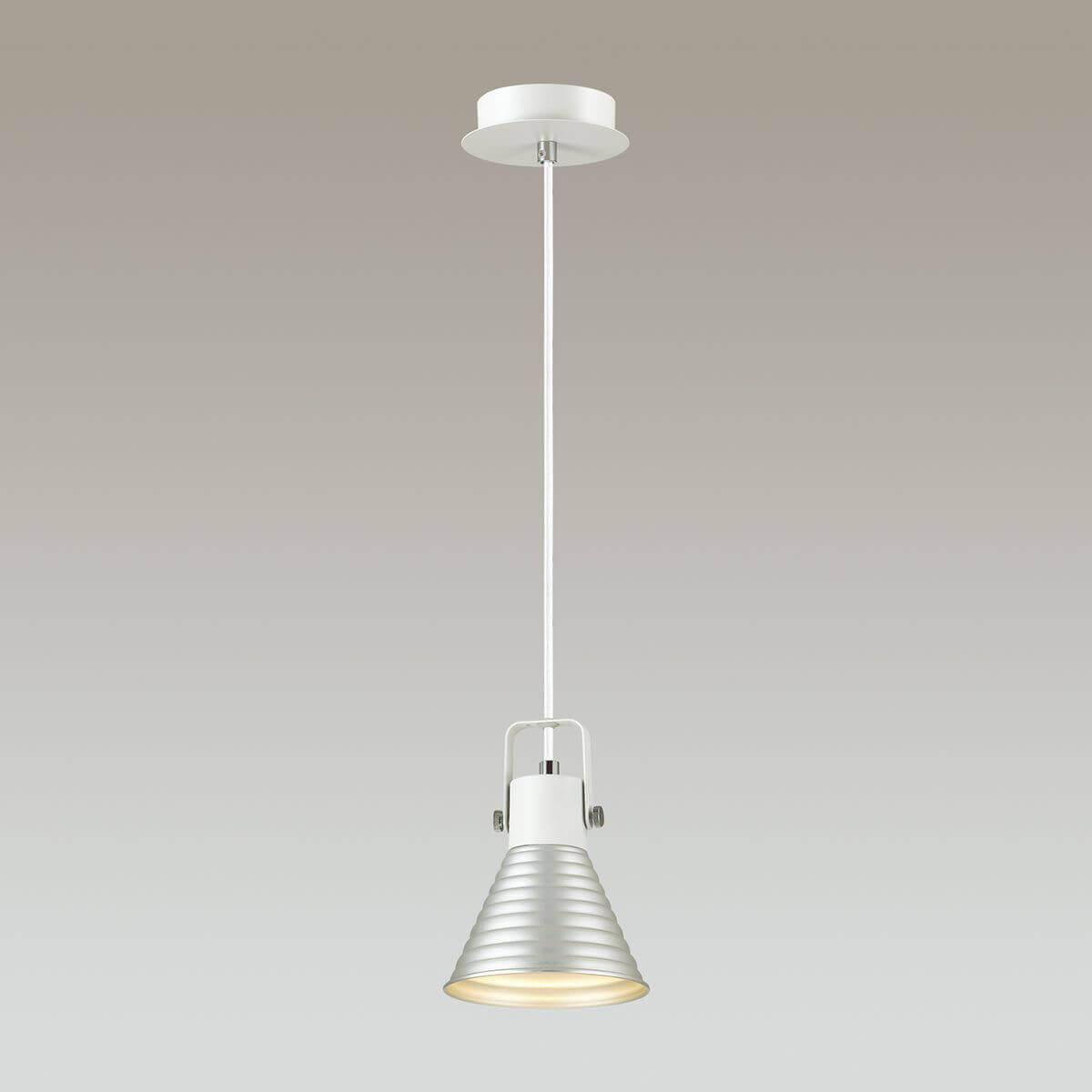 Подвесной светильник Lumion Ollie 3788/1 от Итальянского бренда Lumion из коллекции Ollie предназначен для установки на потолок в кухне в скандинавском стиле. Cветильник в форме конуса с металлической арматурой белого цвета и серебрянного цвета плафонами из металла предназначен для освещения 2,2 м2.