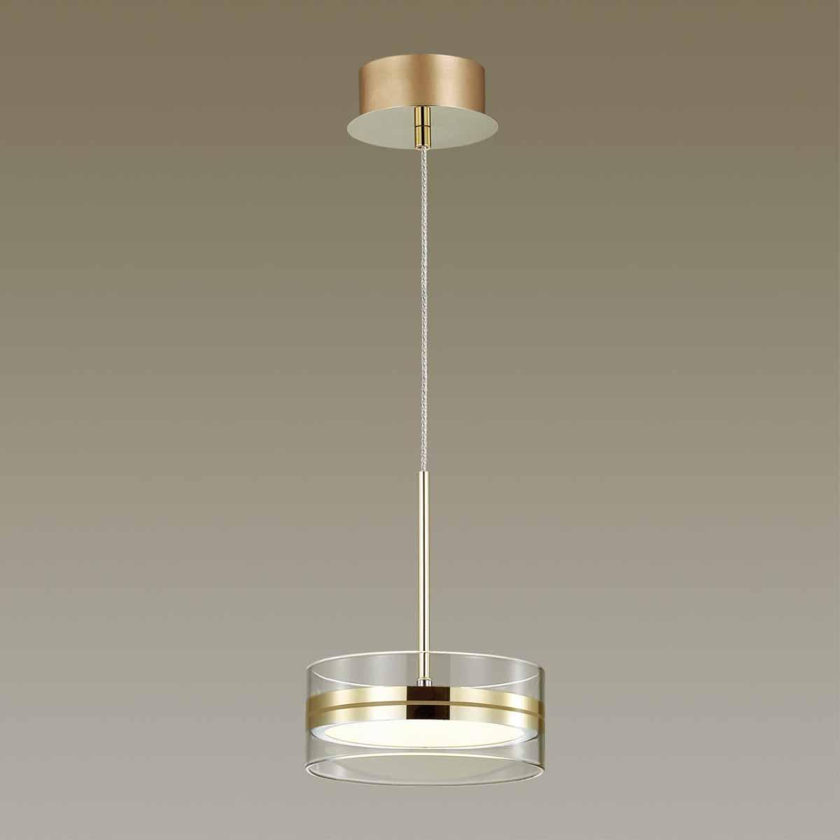 Подвесной светодиодный светильник Odeon Light Akela 4729/14L от бренда Odeon Light из коллекции предназначен для установки на потолок в прихожей в хай-тек стиле. Cветильник в форме цилиндра с металлической арматурой залотого цвета и прозрачного цвета плафонами из акрила предназначен для освещения м2.