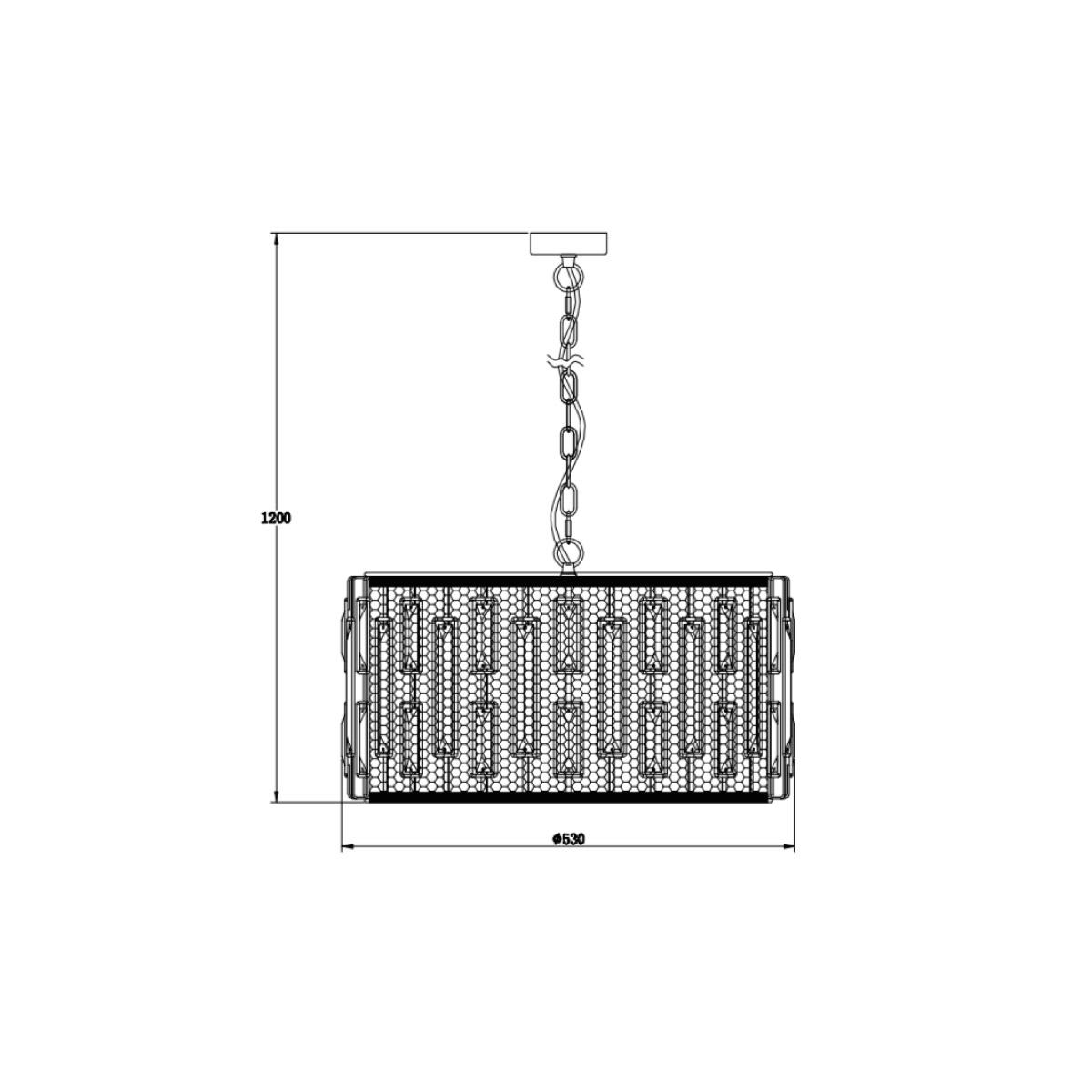 Для светильника необходима 6 ламп накаливания 60 W. Габариты изделия: высота – 1200 мм, диаметр – 530 мм.