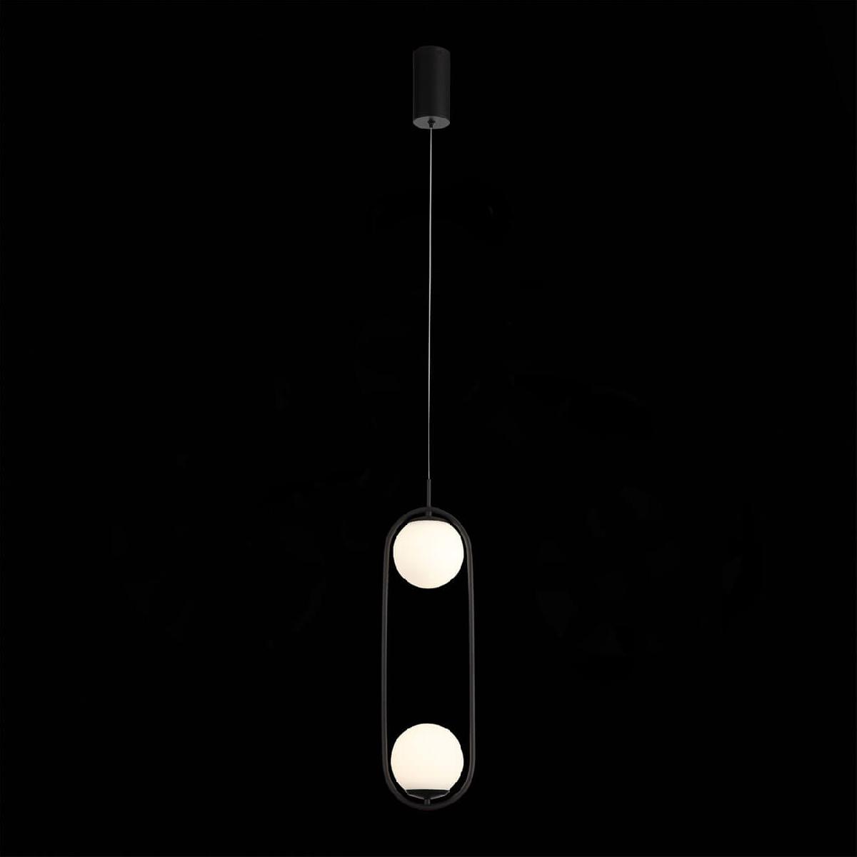 Подвесной светодиодный светильник ST Luce SL395.403.02 от Китайского бренда ST Luce из коллекции Donolo предназначен для установки на потолок в кухне в скандинавском стиле. Cветильник в форме круга с металлической арматурой черного цвета и белого цвета плафонами из стекла предназначен для освещения 6 м2.