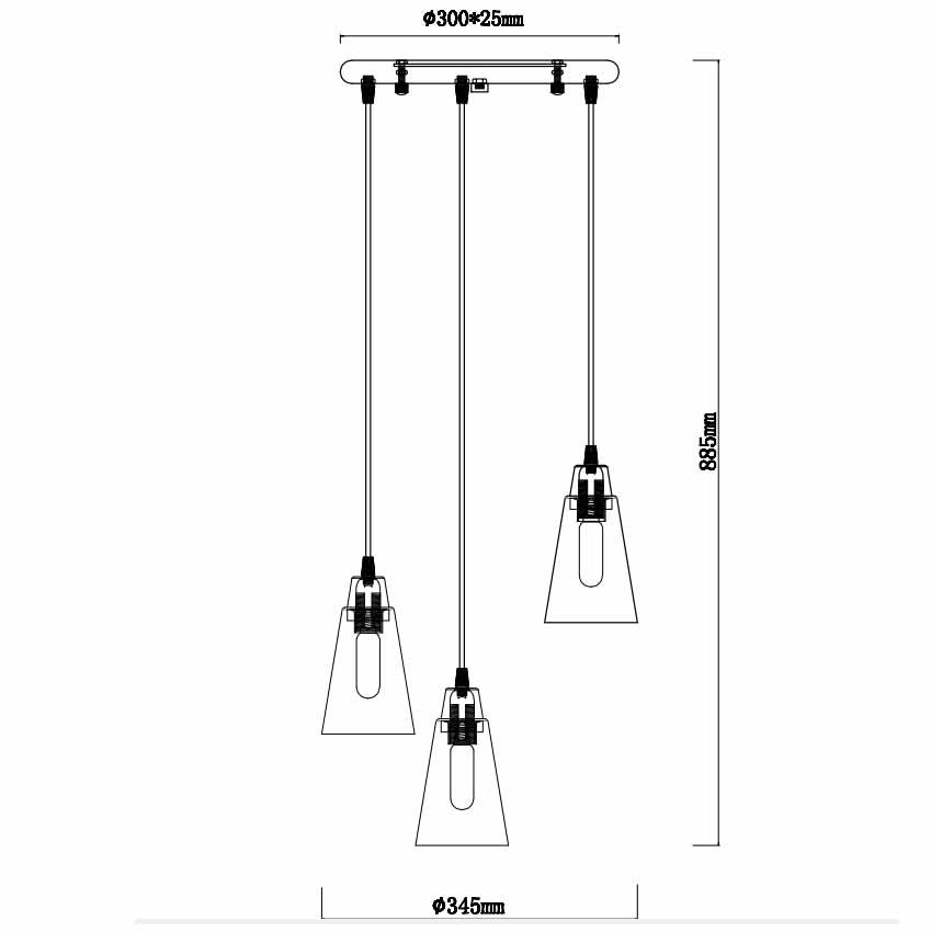 Для светильника необходима 3 лампы накаливания 40 W. Габариты изделия: высота – 885 мм, диаметр – 345 мм.