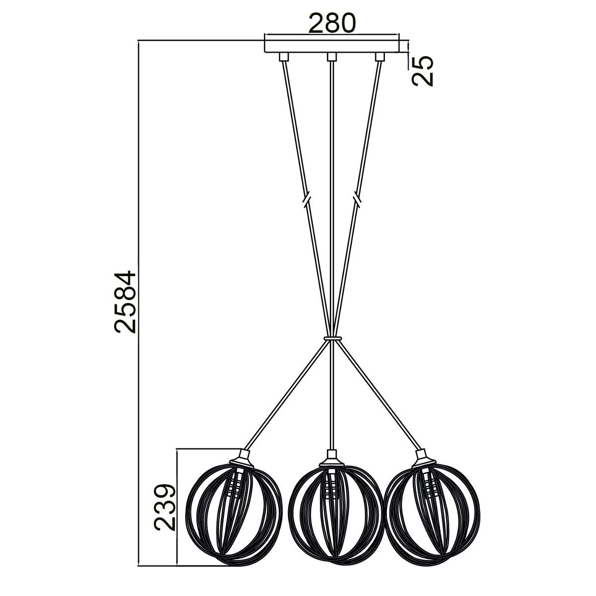 Для светильника необходима 5 ламп накаливания 40 W. Габариты изделия: высота – 2584 мм, диаметр – 361 мм.
