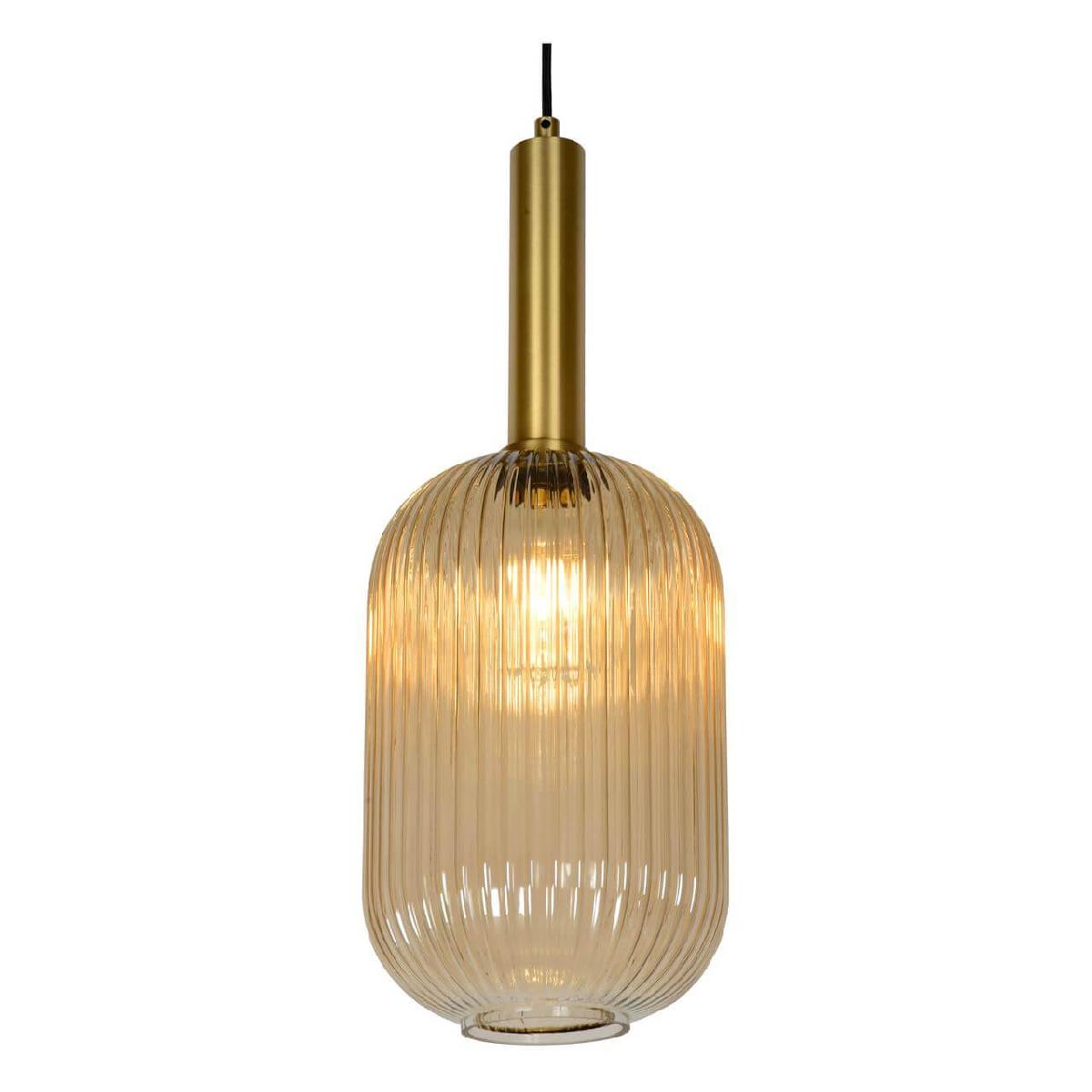 Подвесной светильник Lucide Maloto 45386/20/62 от Китайского бренда Lucide из коллекции Maloto предназначен для установки на потолок в кухне в ретро стиле. Cветильник в форме овала с металлической арматурой залотого цвета и янтарного цвета плафонами из стекла предназначен для освещения 2 м2.