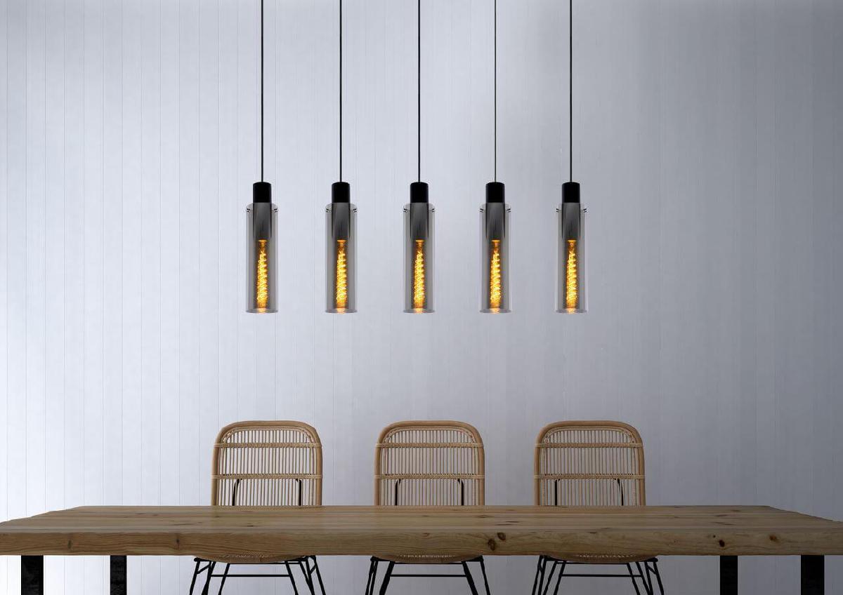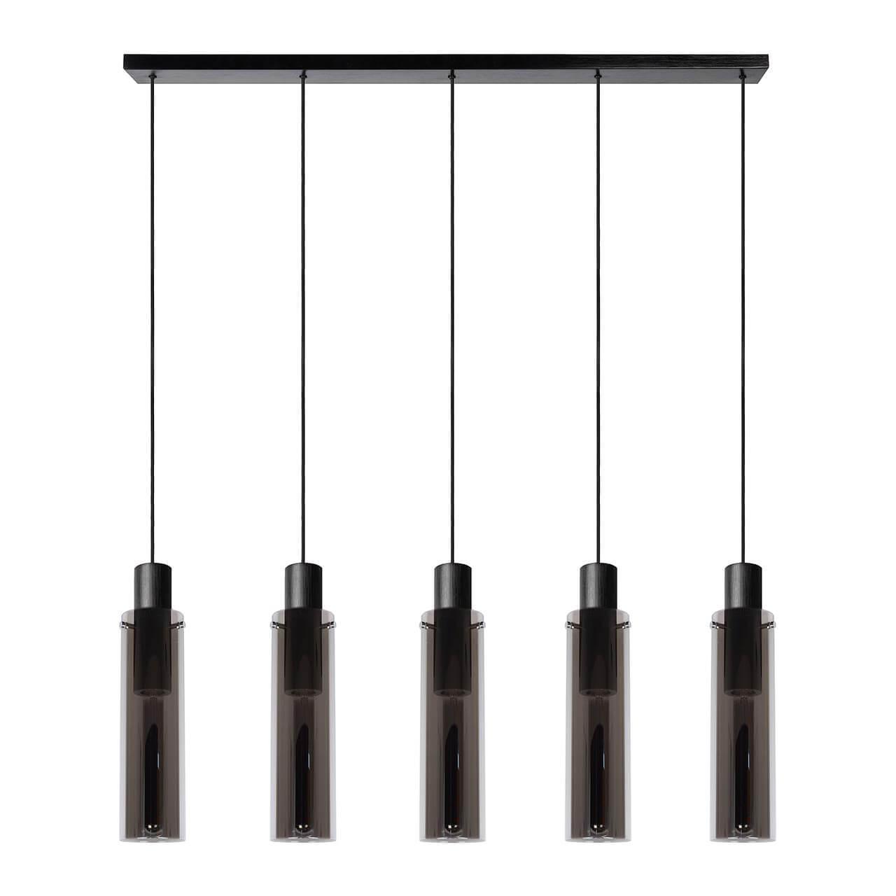 Подвесной светильник Lucide Orlando 74404/05/65 от Китайского бренда Lucide из коллекции Orlando предназначен для установки на потолок в кухне в современном стиле. Cветильник в форме цилиндра с металлической арматурой черного цвета и дымчатого цвета плафонами из стекла предназначен для освещения 11 м2.