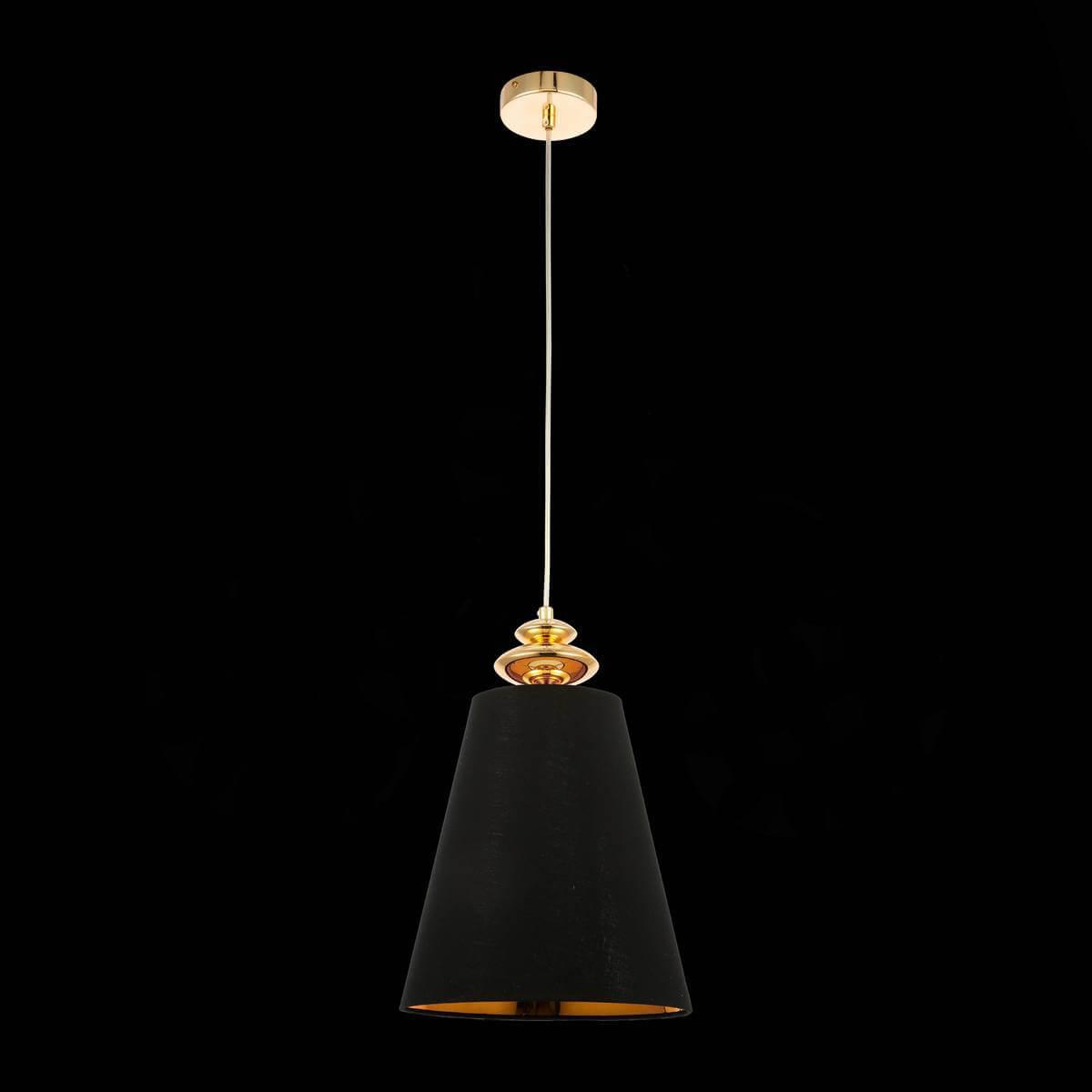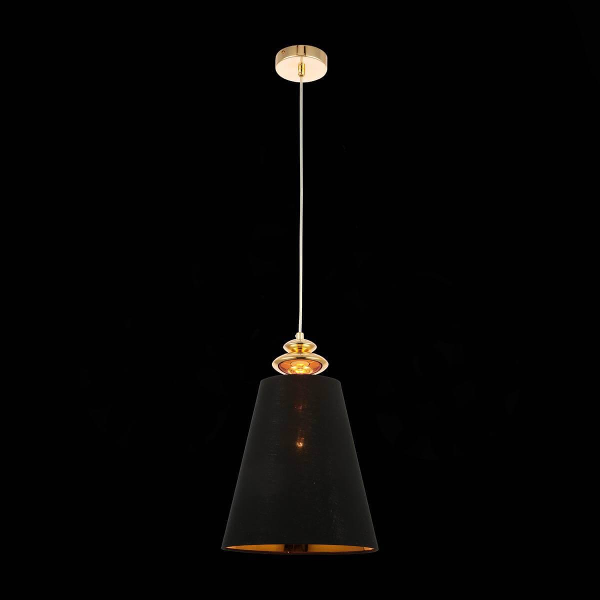Подвесной светильник Evoluce Rionfo SSL1137.203.01 от Китайского бренда Evoluce из коллекции Rionfo предназначен для установки на потолок в спальни в классиком стиле. Cветильник в форме конуса с металлической арматурой залотого цвета и черного цвета плафонами из ткани предназначен для освещения 2 м2.