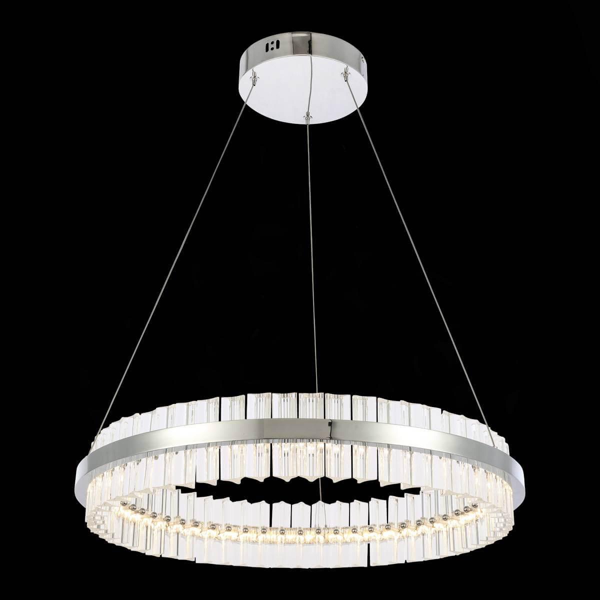 Подвесной светодиодный светильник ST Luce Cherio SL383.113.01 от Китайского бренда ST Luce из коллекции Cherio предназначен для установки на потолок в спальни в дизайнерском стиле. Cветильник в форме круга с металлической арматурой цвет хрома и прозрачного цвета плафонами из хрусталя предназначен для освещения 15 м2.