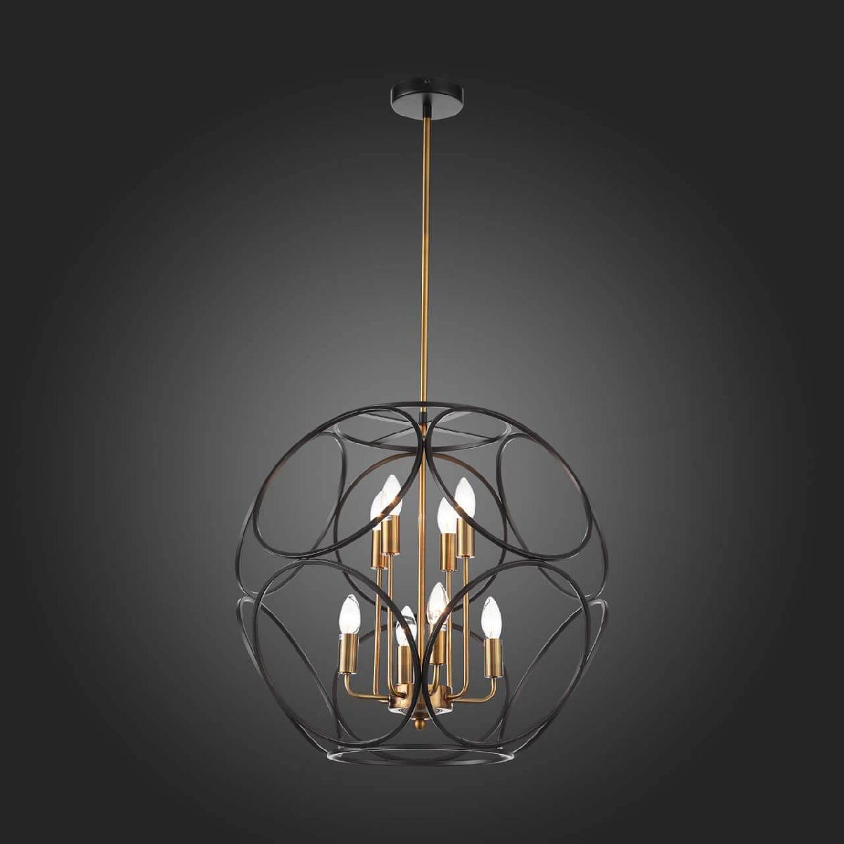 Для светильника необходима 8 ламп накаливания 40 W. Габариты изделия: высота – 638 мм, диаметр – 597 мм.
