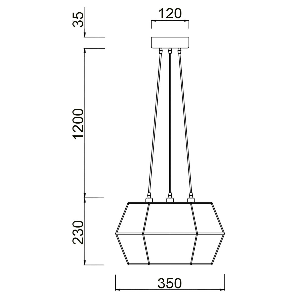 Для светильника необходима 3 лампы накаливания 60 W. Габариты изделия: высота – 1465 мм, диаметр – 350 мм.