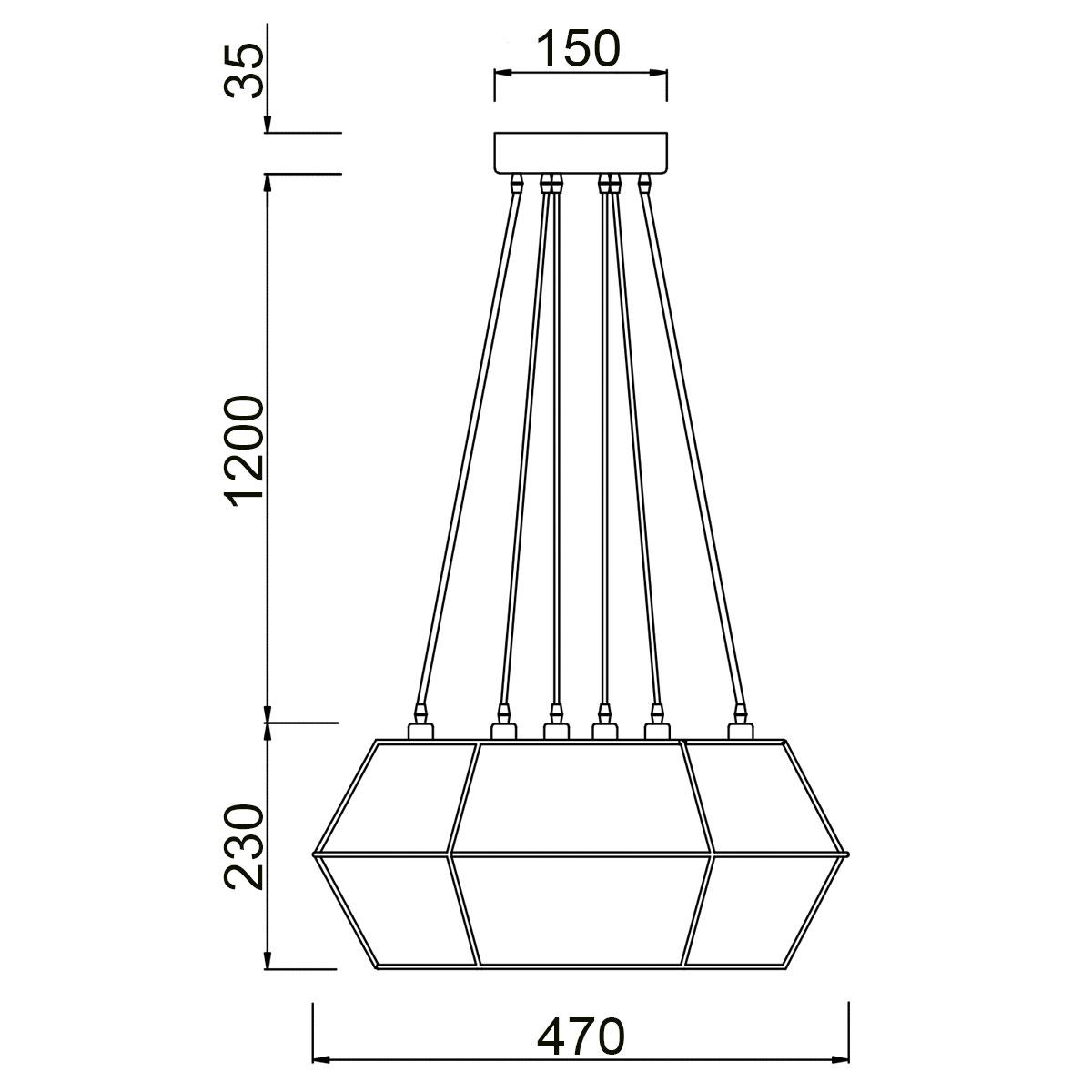 Для светильника необходима 6 ламп накаливания 60 W. Габариты изделия: высота – 1465 мм, диаметр – 470 мм.