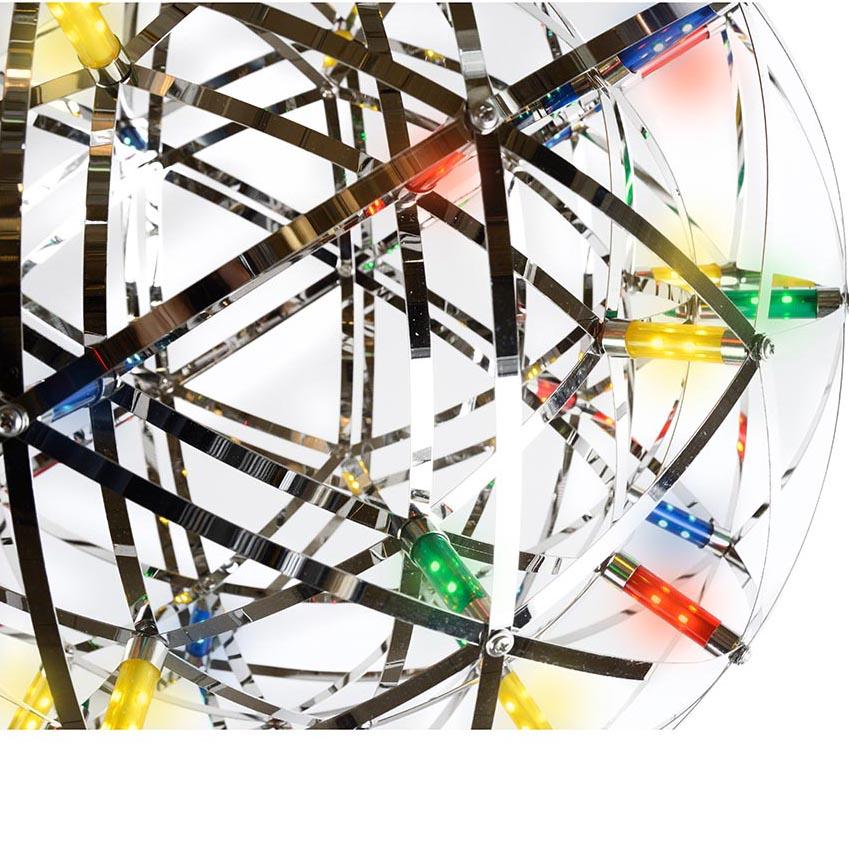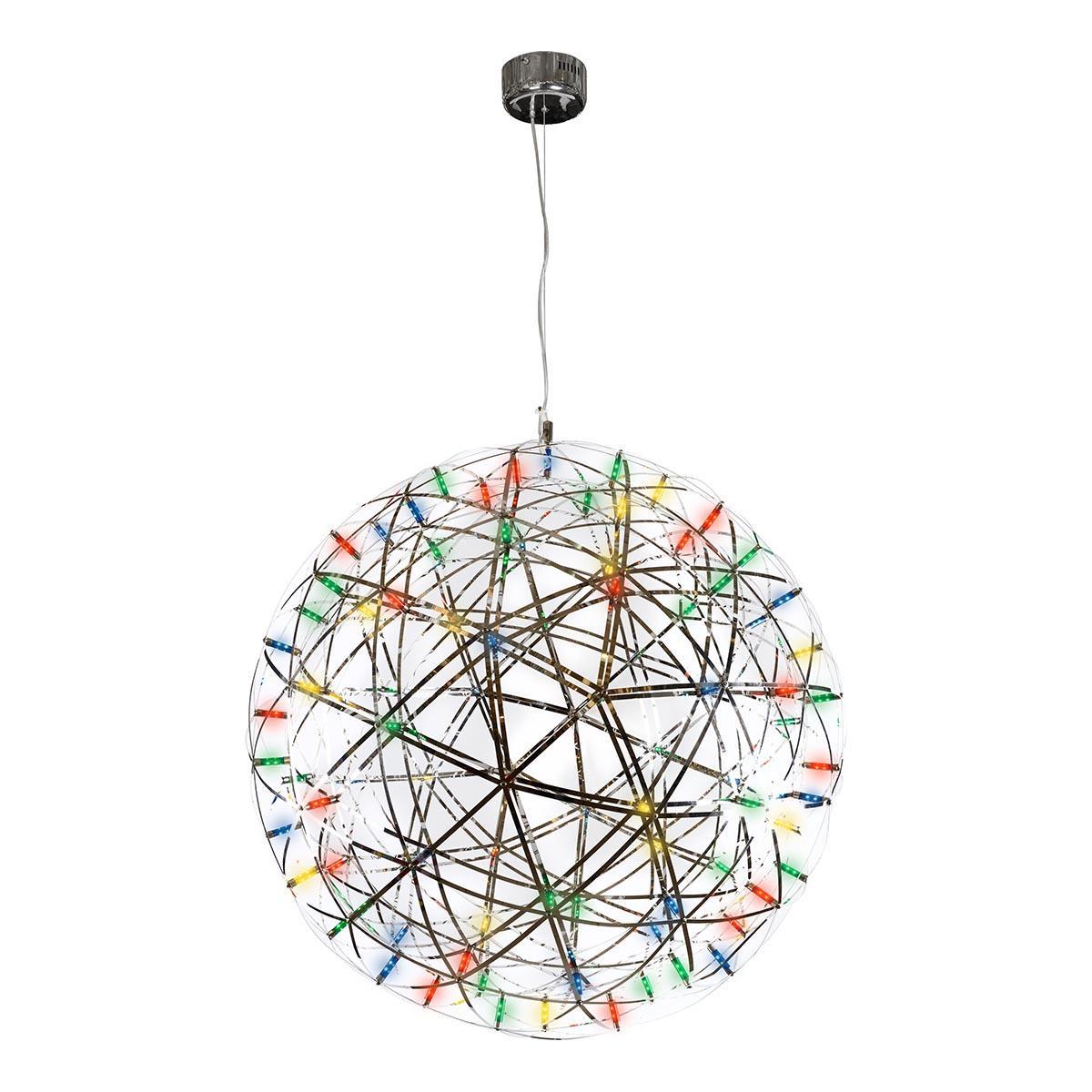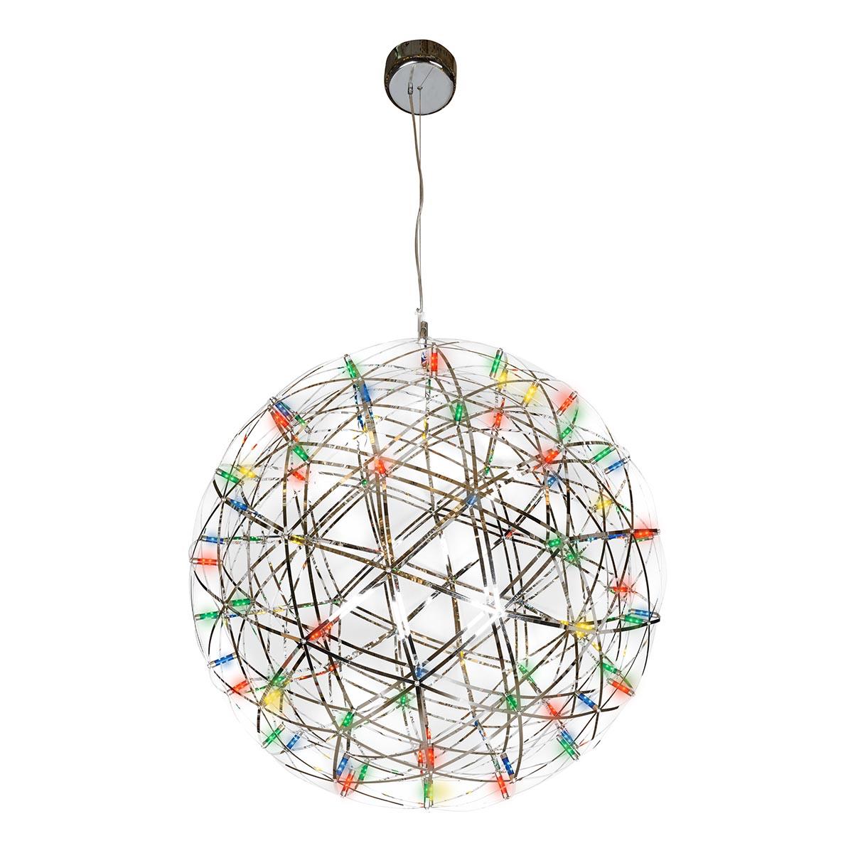 Подвесной светодиодный светильник iLedex Stratosphere FG 800-92 RGB CR от Китайского бренда iLedex из коллекции Stratosphere предназначен для установки на потолок в гостиной в хай-тек стиле. Cветильник в форме шара с металлической арматурой цвет хрома и цвет хрома плафонами из металла предназначен для освещения 12 м2.