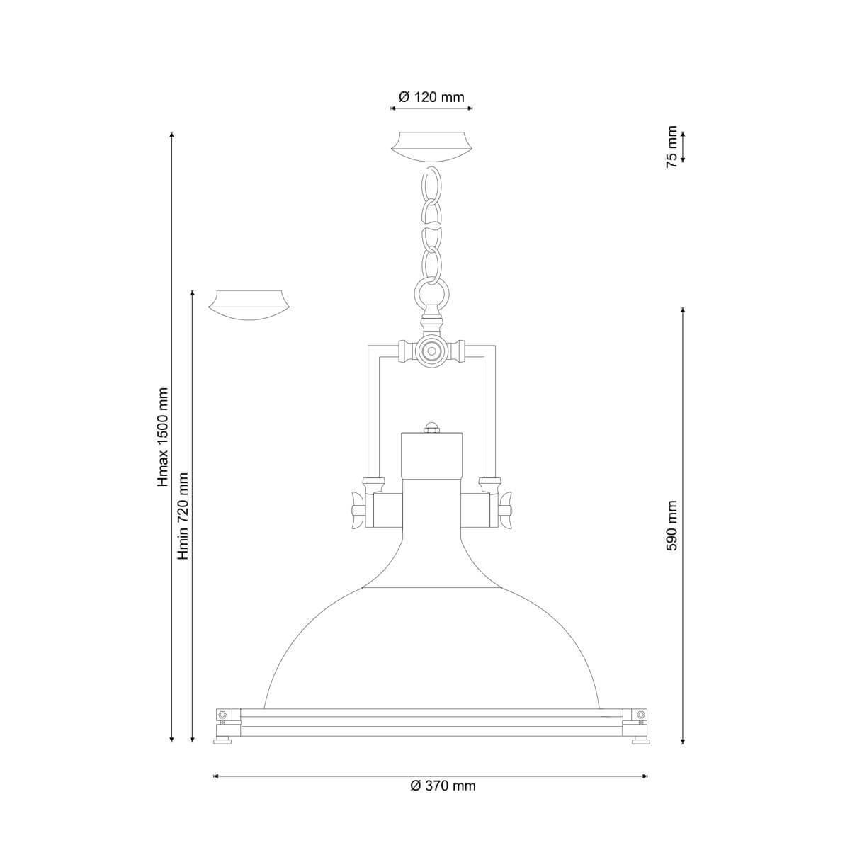 Для светильника необходима 1 лампа накаливания 60 W. Габариты изделия: высота – 570 мм, диаметр – 450 мм.