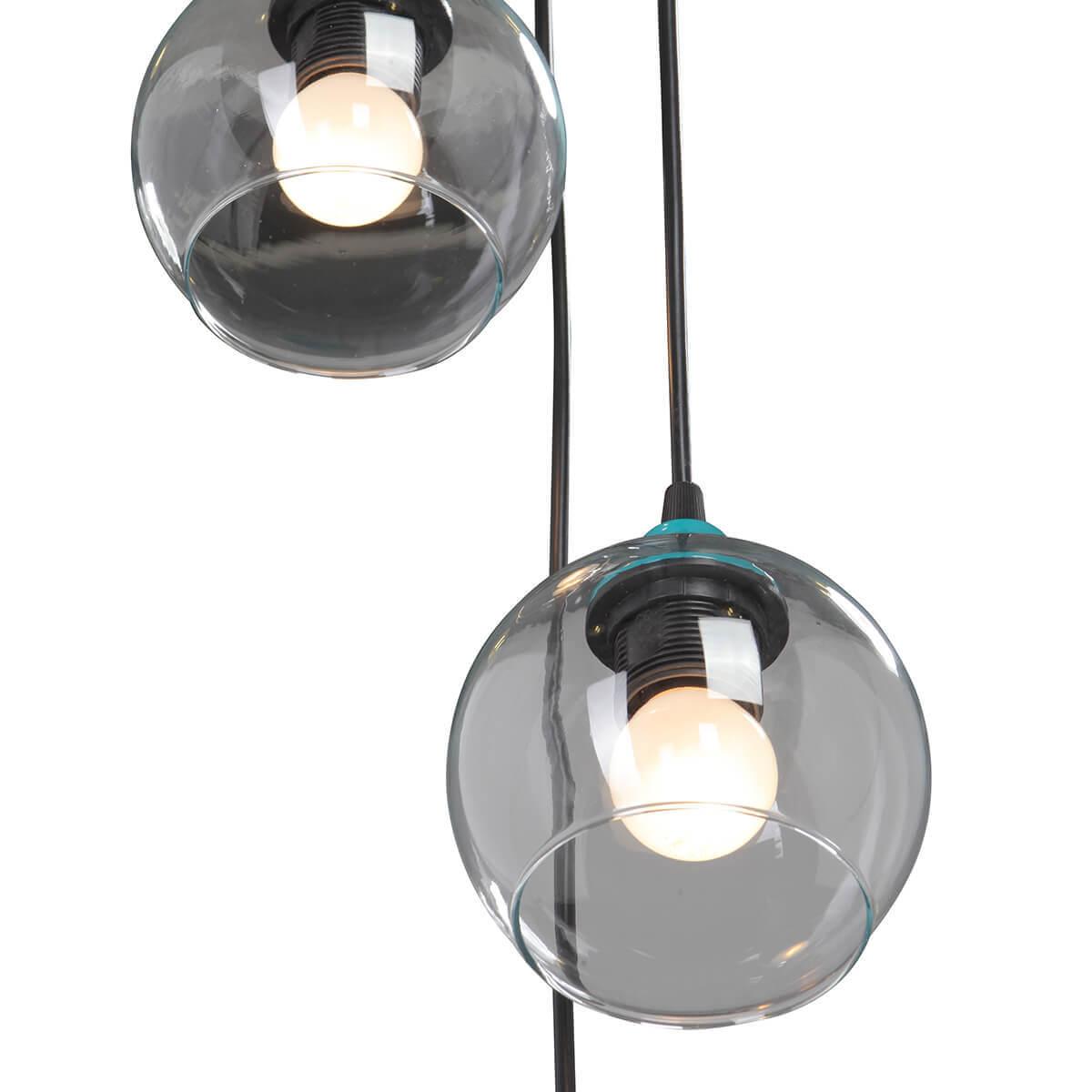 Подвесной светильник Vitaluce V4792-5/3S от бренда Vitaluce из коллекции предназначен для установки на потолок в гостиной в лофт стиле. Cветильник в форме полушара с металлической арматурой бирюзового цвета и прозрачного цвета плафонами из стекла предназначен для освещения 10 м2.