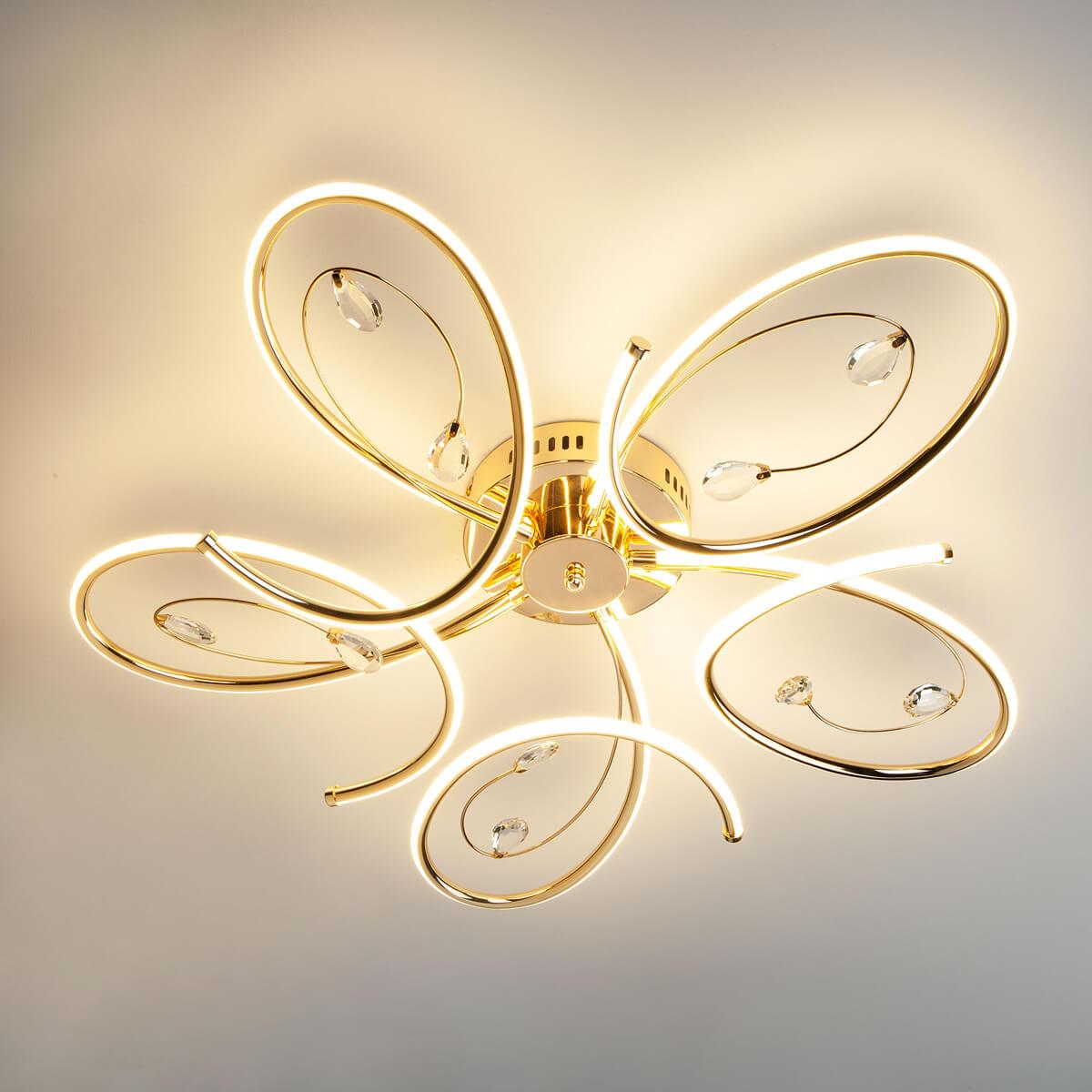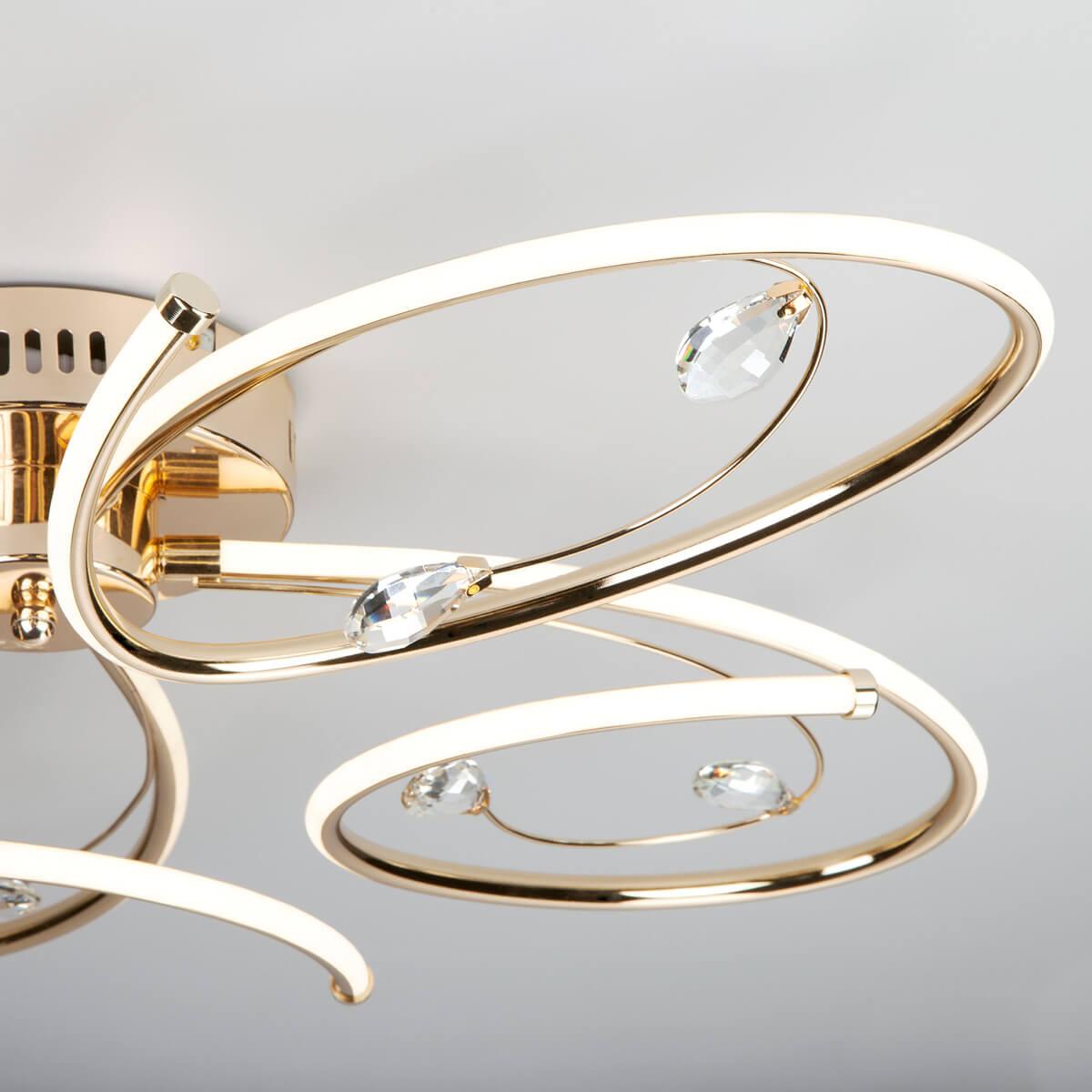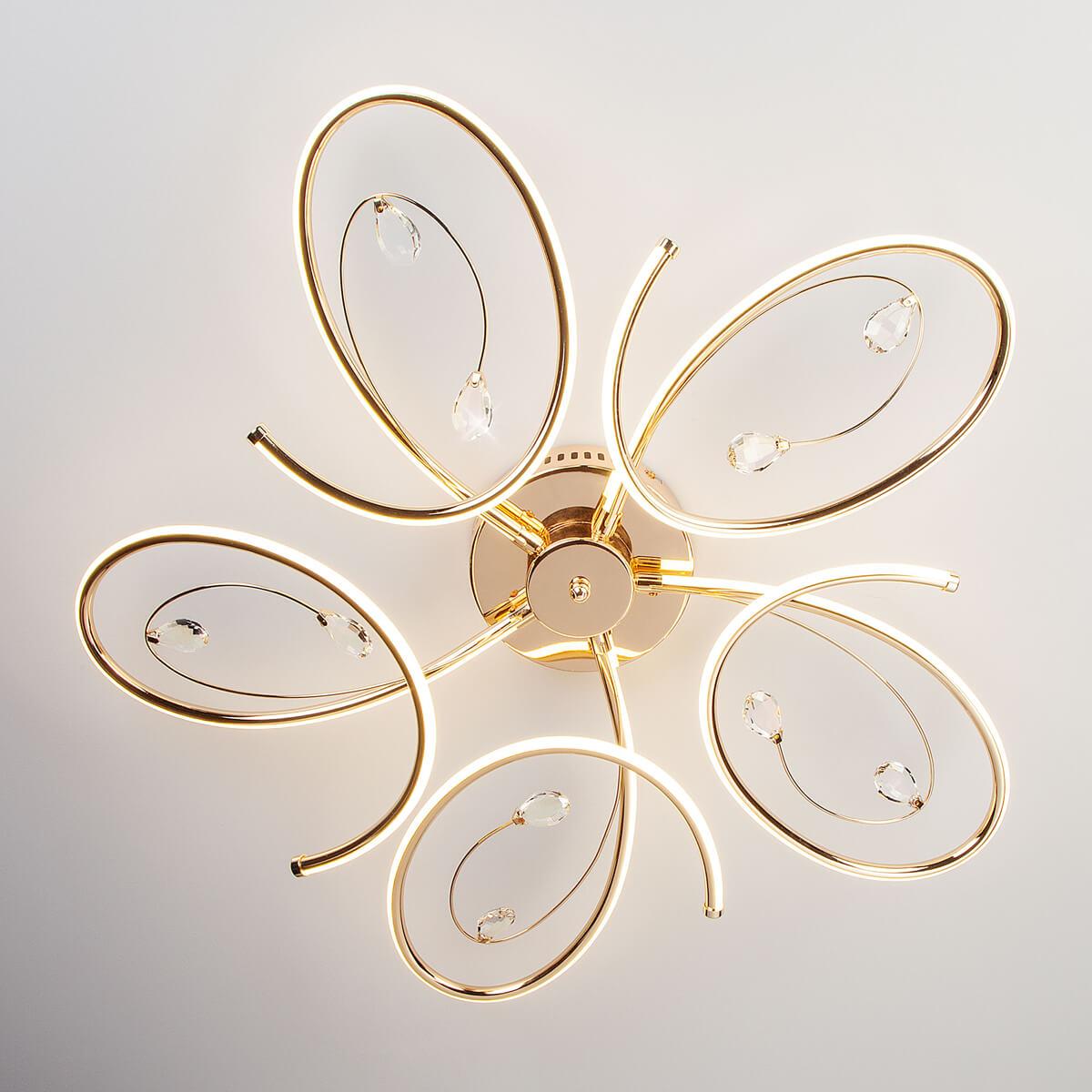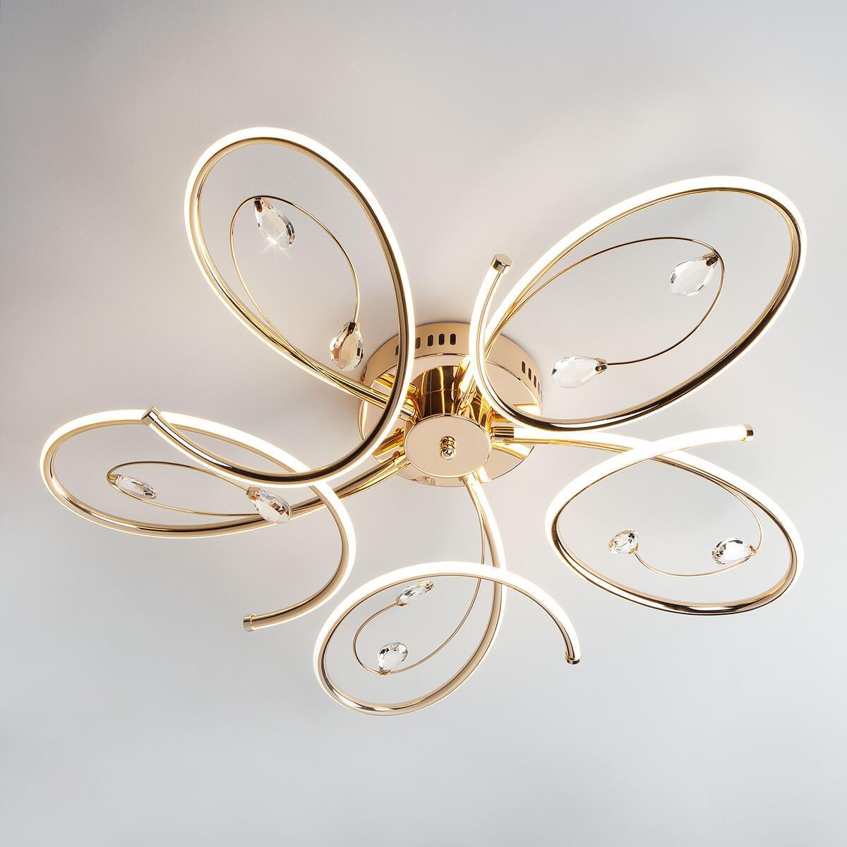 Потолочный светильник Eurosvet 90099/5 золото от Китайского бренда Eurosvet из коллекции Saona предназначен для установки на потолок в гостиной в стиле модерн. Cветильник в форме овала с металлической арматурой и белого цвета плафонами из пластика предназначен для освещения м2.