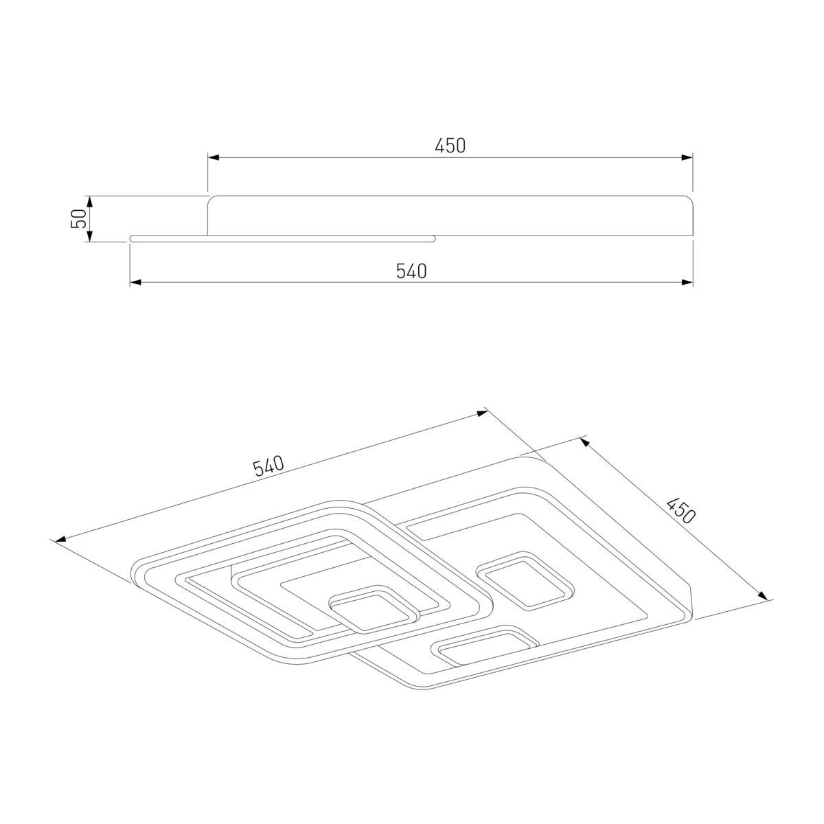 Для светильника необходима светодиодных ламп 132 W. Габариты изделия: высота – 50 мм, диаметр – мм.