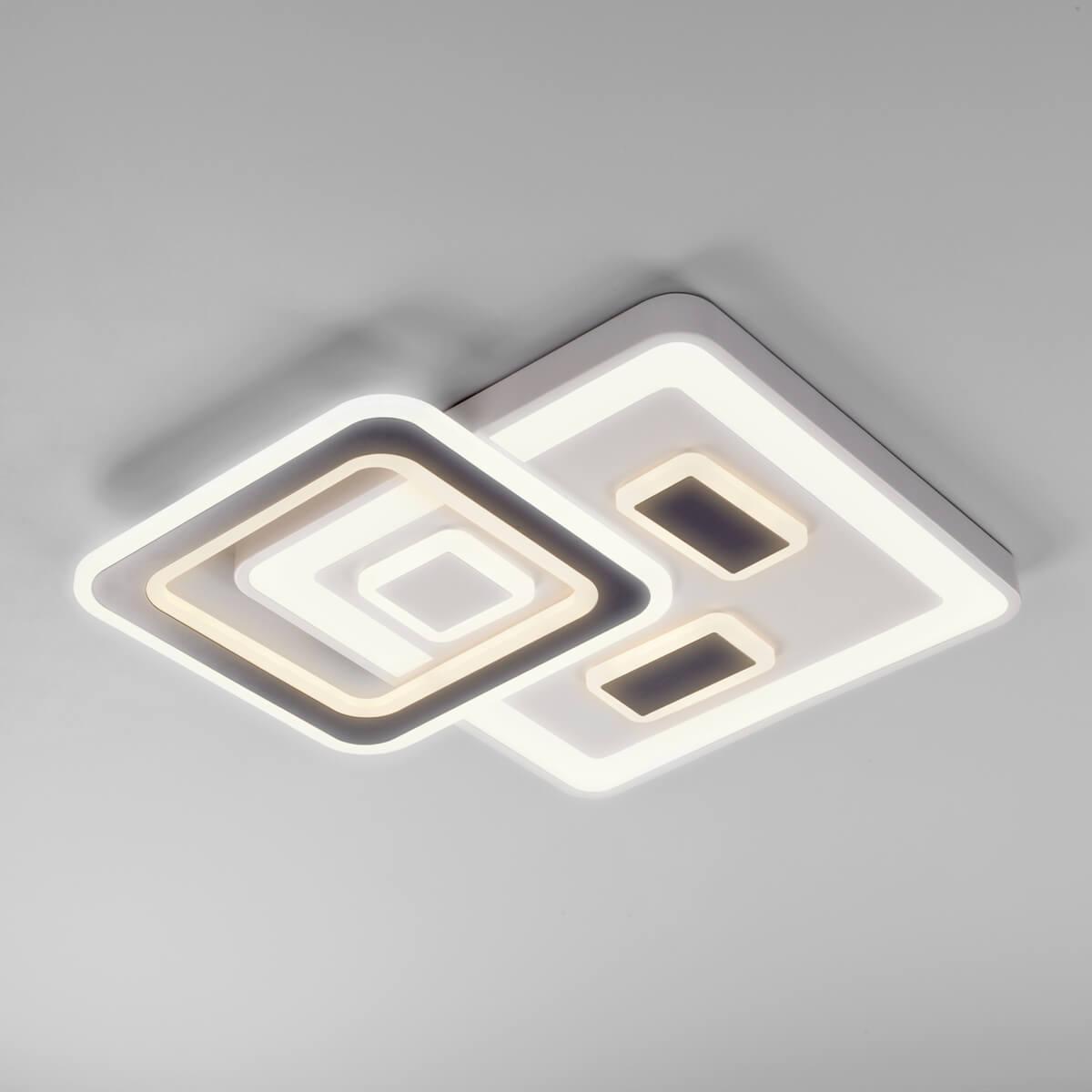 Потолочный светодиодный светильник Eurosvet 90156/1 белый от Китайского бренда Eurosvet из коллекции Concord предназначен для установки на потолок в спальни в современном стиле. Cветильник в форме квадрата с металлической арматурой белого цвета и белого цвета плафонами из пластика предназначен для освещения м2.