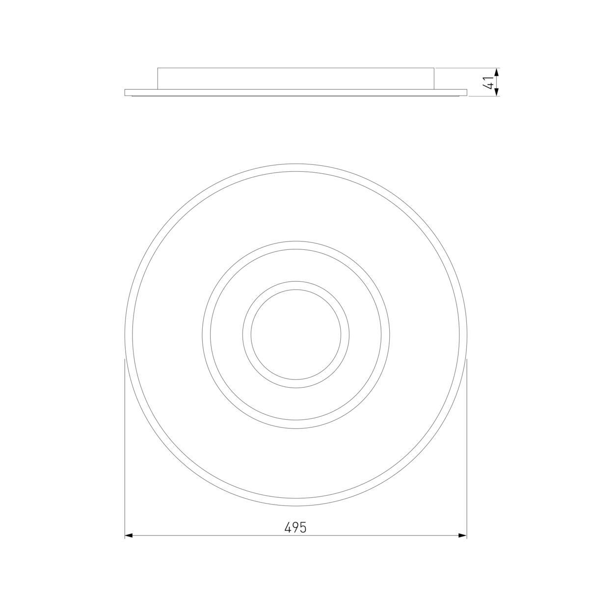 Для светильника необходима светодиодных ламп 77 W. Габариты изделия: высота – 41 мм, диаметр – 495 мм.