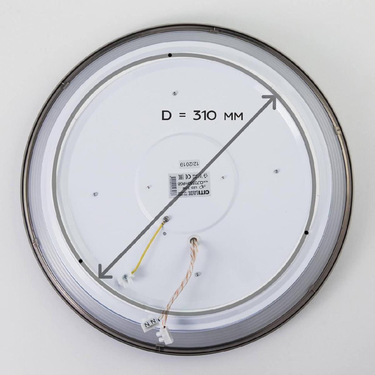 Для светильника необходима светодиодных ламп 35 W. Габариты изделия: высота – 70 мм, диаметр – 420 мм.