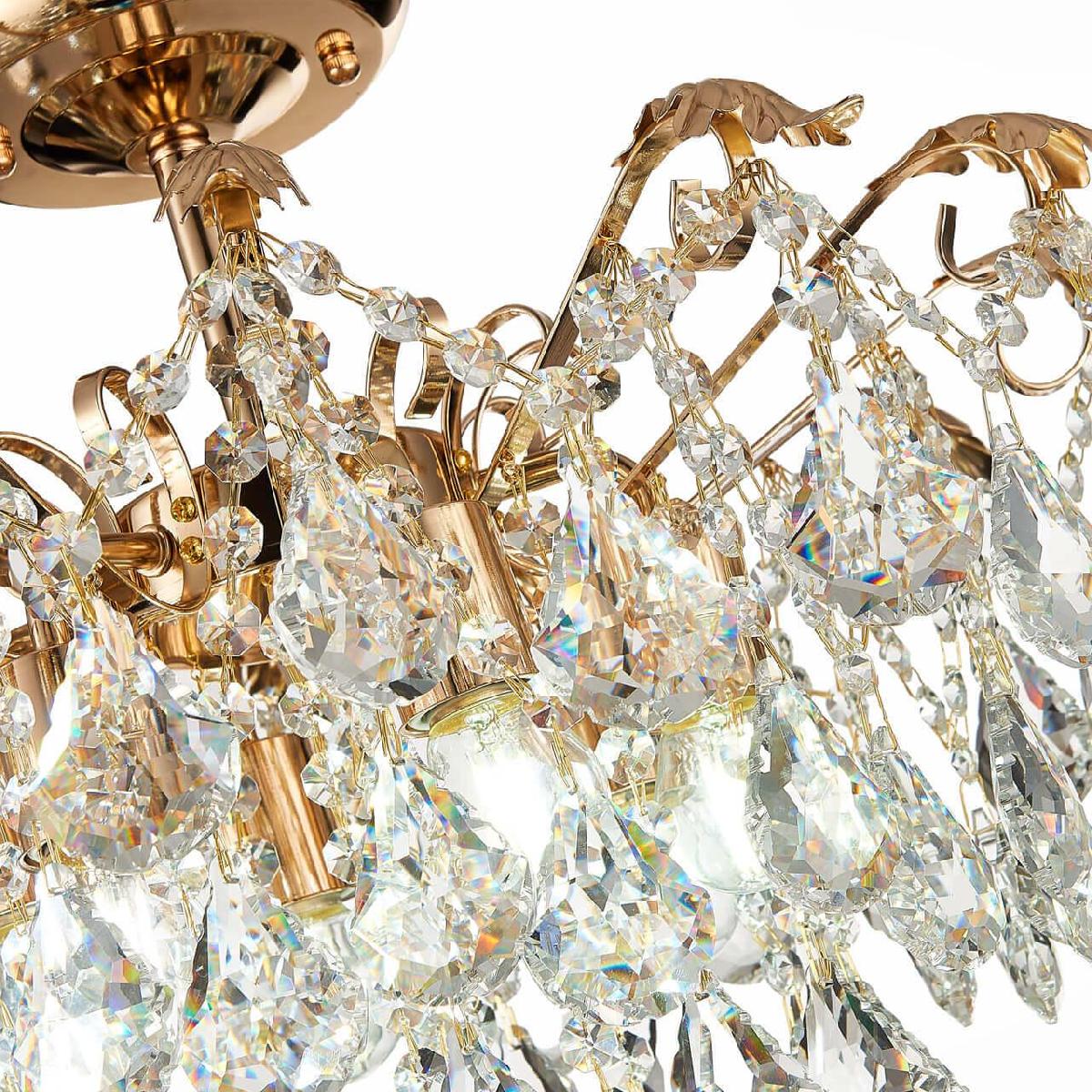 Потолочный светильник Evoluce Kristo SLE160202-06 от Китайского бренда Evoluce из коллекции Kristo предназначен для установки на потолок в спальни в классиком стиле. Cветильник в форме декоративного с металлической арматурой и прозрачного цвета плафонами из хрусталя предназначен для освещения 20 м2.