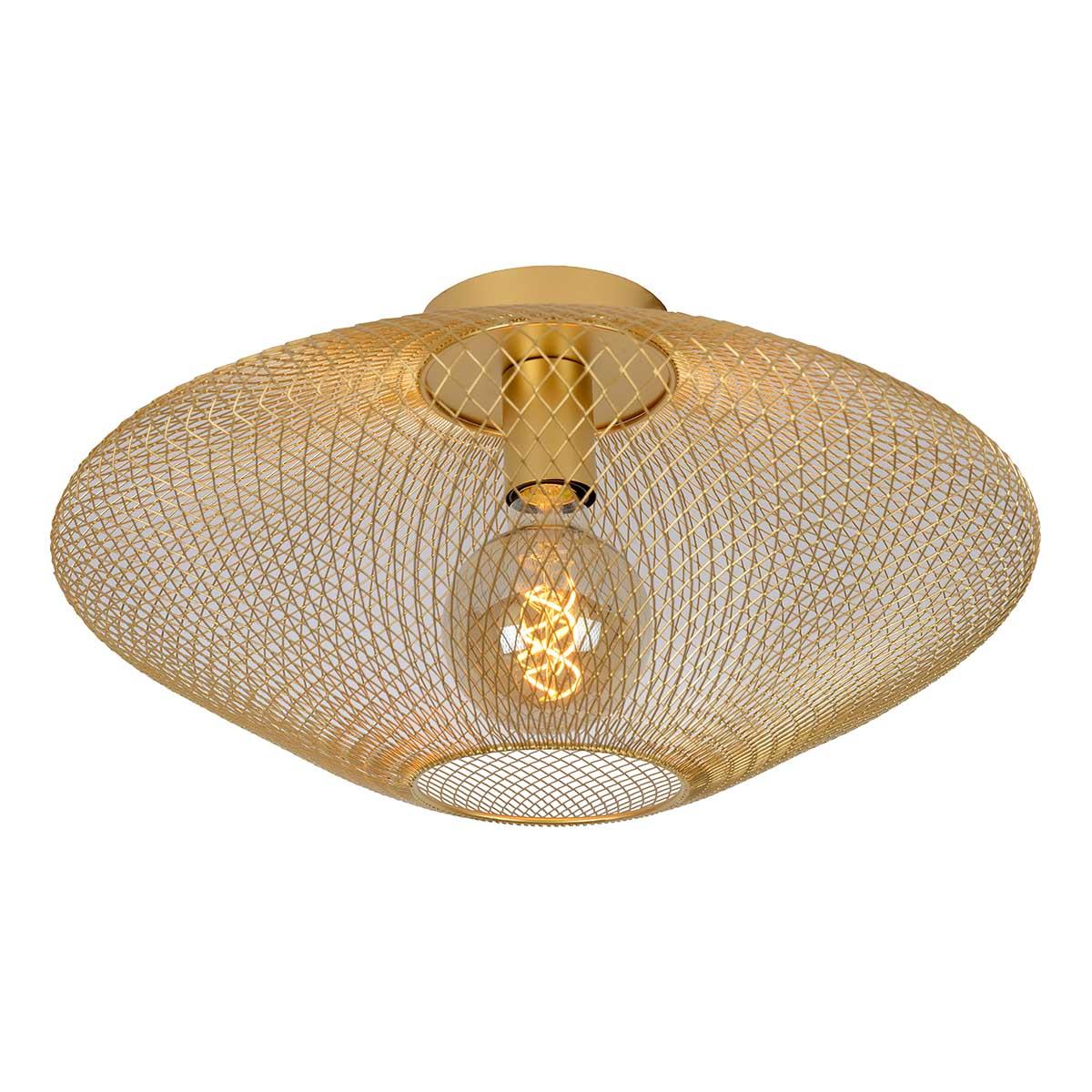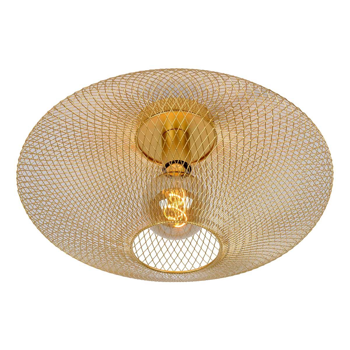 Потолочный светильник Lucide Mesh 21123/45/02 от Китайского бренда Lucide из коллекции Mesh предназначен для установки на потолок в прихожей в лофт стиле. Cветильник в форме конуса с металлической арматурой залотого цвета и залотого цвета плафонами из металла предназначен для освещения 2 м2.