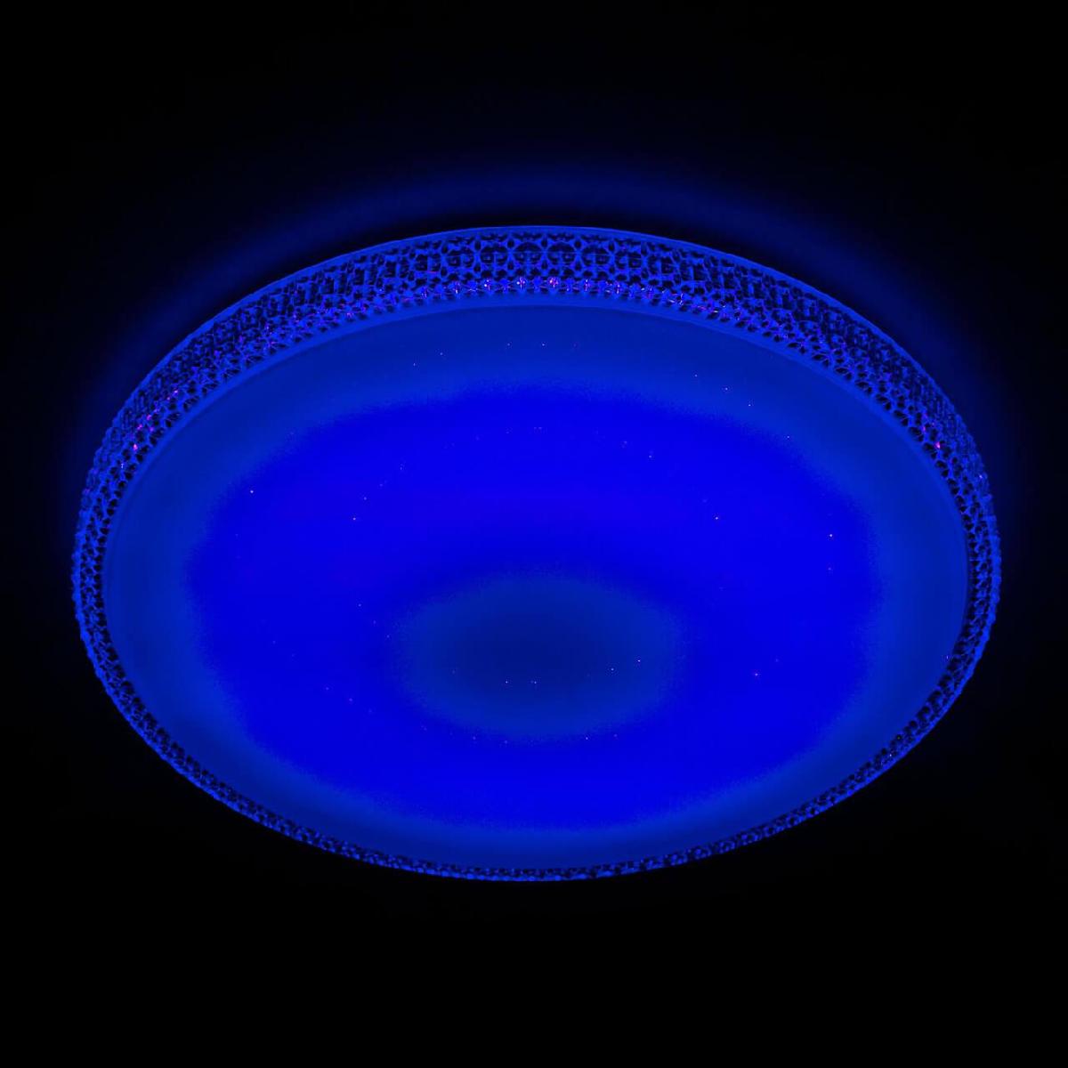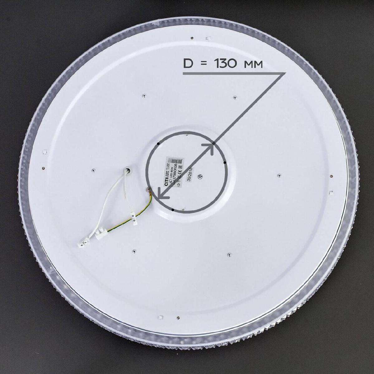 Для светильника необходима светодиодных ламп 80 W. Габариты изделия: высота – 95 мм, диаметр – 560 мм.