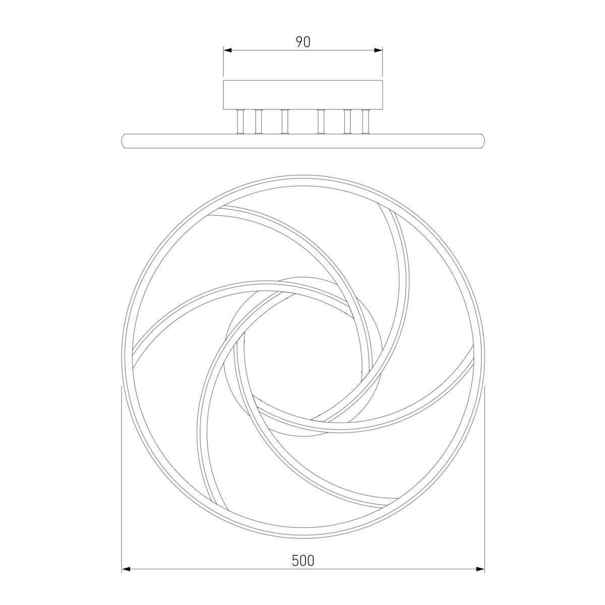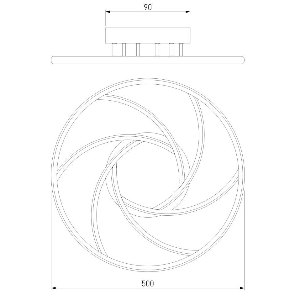 Для светильника необходима светодиодных ламп 100 W. Габариты изделия: высота – 90 мм, диаметр – 500 мм.