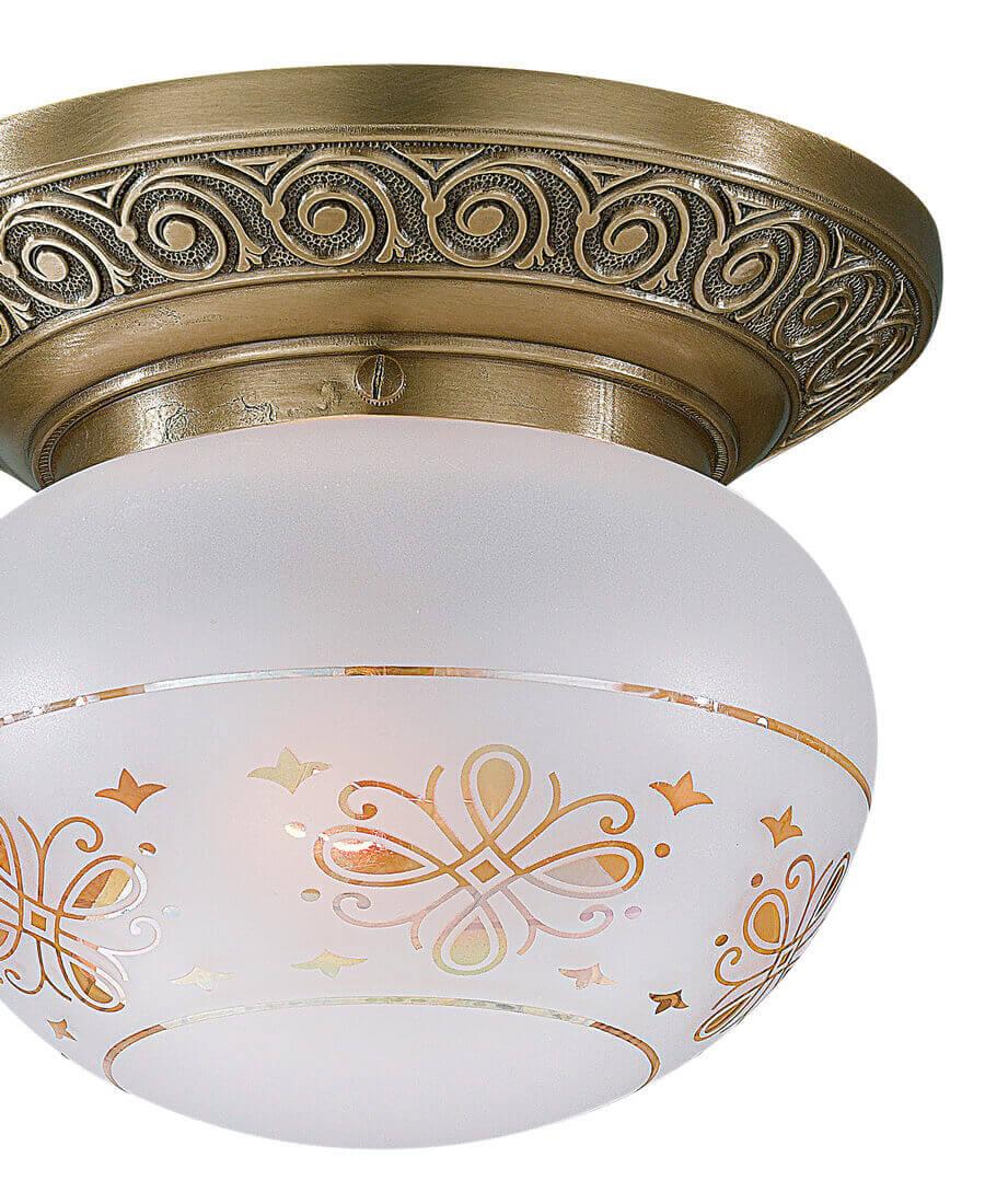 Потолочный светильник Reccagni Angelo PL.7745/1 от Итальянского бренда из коллекции rosa 775 предназначен для установки на потолок в прихожей в классиком стиле. Cветильник в форме с латунной арматурой цвета античной бронзы и белого цвета плафонами из стекла предназначен для освещения 3 м2.