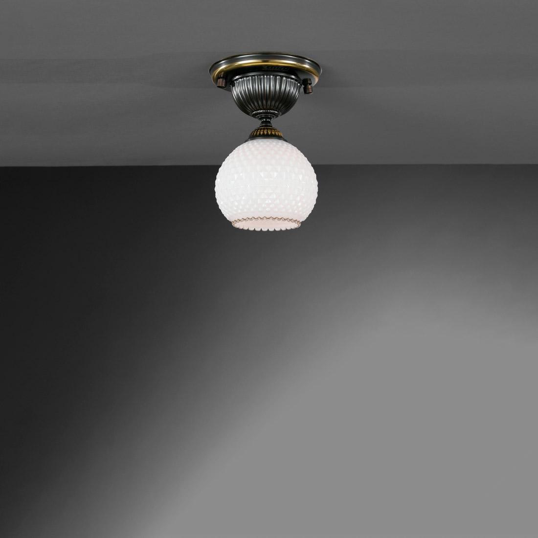 Потолочный светильник Reccagni Angelo PL.8610/1 от Итальянского бренда из коллекции rosa 8610 предназначен для установки на потолок в прихожей в классиком стиле. Cветильник в форме с латунной арматурой бронзового цвета и белого цвета плафонами из стекла предназначен для освещения 3 м2.