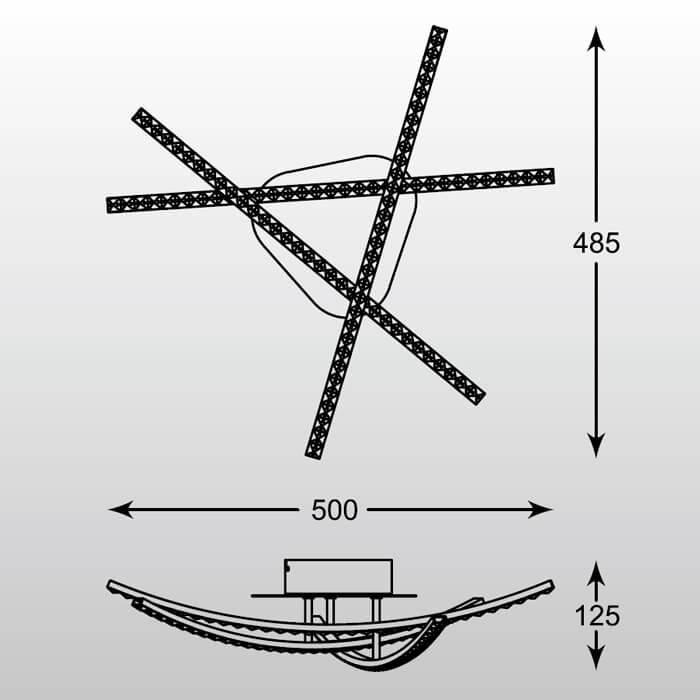 Для светильника необходима светодиодных ламп 29 W. Габариты изделия: высота – 125 мм, диаметр – 500 мм.