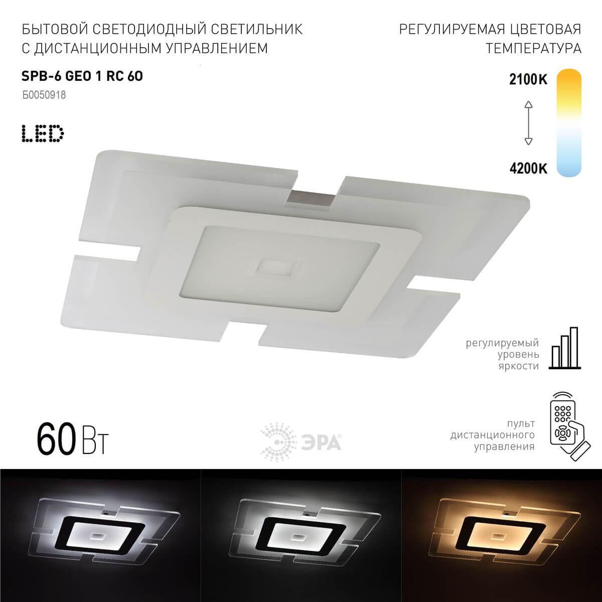 Потолочный светодиодный светильник ЭРА Geo с ДУ SPB-6 Geo 1 RC 60 Б0050918